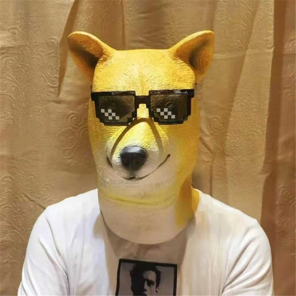 Testa di animale divertente maschera testa di asino Deluxe novità Halloween pesce verde Costume Husky con occhiali puntelli di carnevale per feste