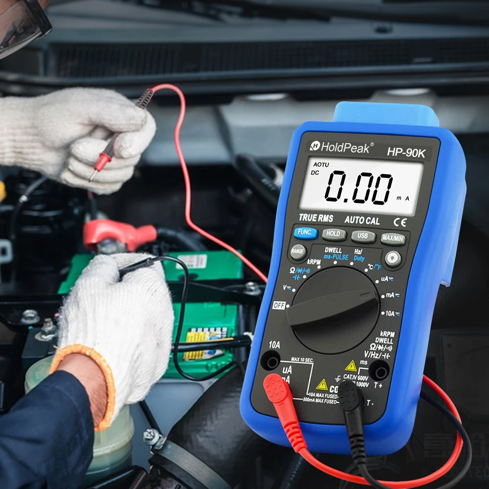 Tester per analizzatore motore digitale HoldPeak HP-90K Strumento diagnostico per auto con gamma automatica con uscita dati tramite multimetro automobilistico USB