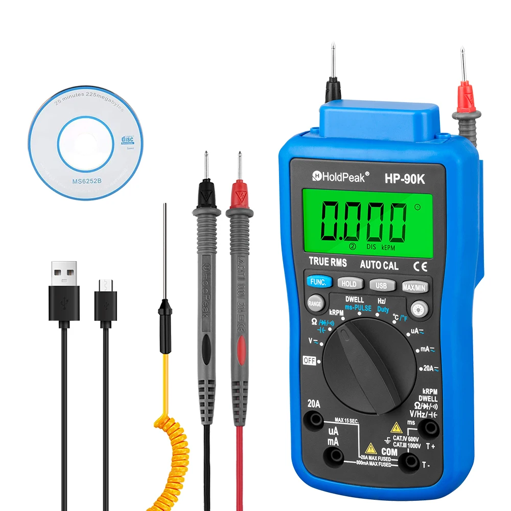 Multimetro analizzatore motore digitale HoldPeak HP-90K x1 Manuale inglese x 1 Software per CD x Puntali x 1 Sonda per test della temperatura x 1 Borsa per il trasporto x 1 USB1 Attenzione: China Post Air Mail, ePacket ed e-EMS non consentono la spedizione del CD. Ti preghiamo di fornirci la tua email al momento del pagamento, ti invieremo il file CD. È un file di unità del multimetro collegato al computer.