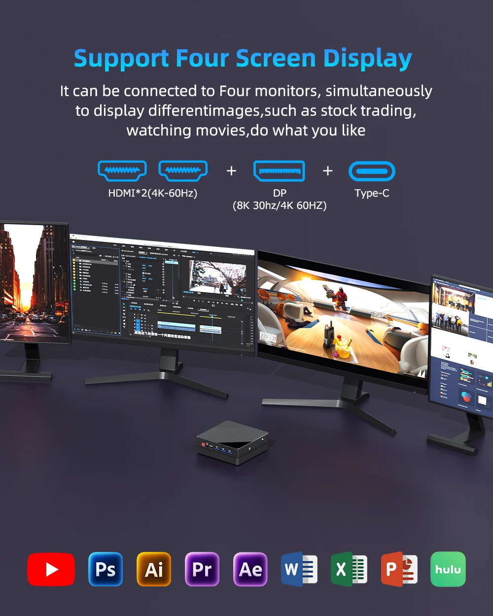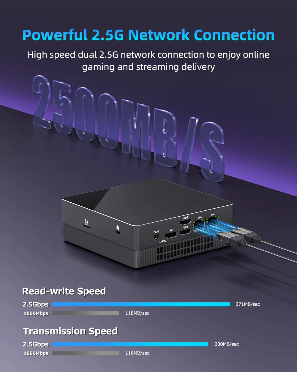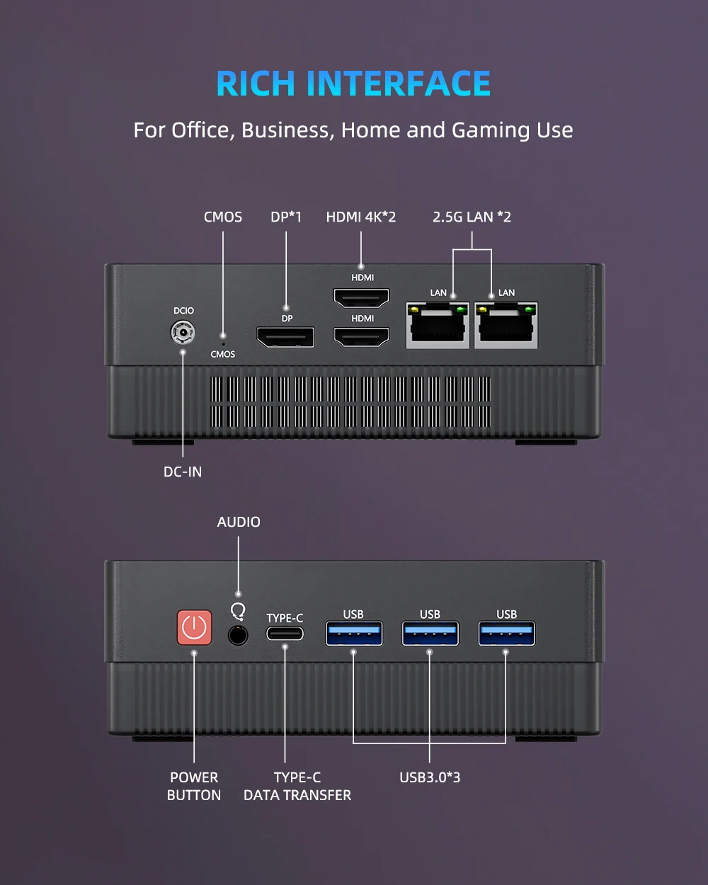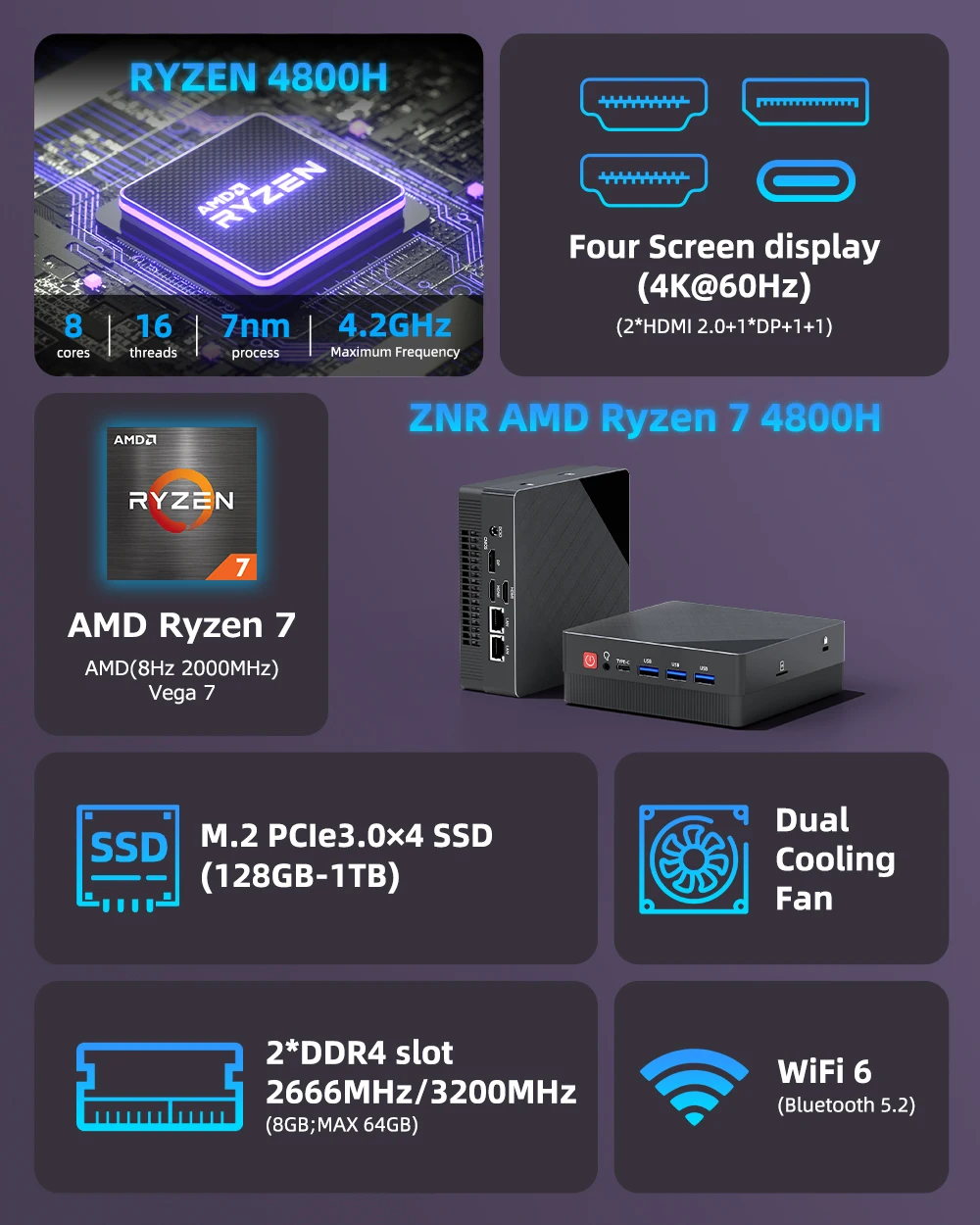 La porta di rete del mini PC R7-4800H è 1G LAN*2, TIPO-C non può supportare la funzione di visualizzazione, anche non può espandere SSD SATA da 2,5 pollici.