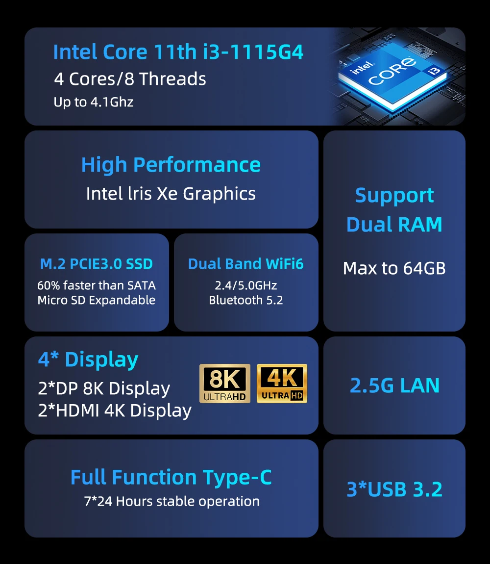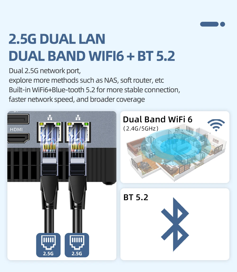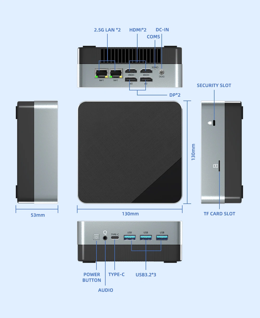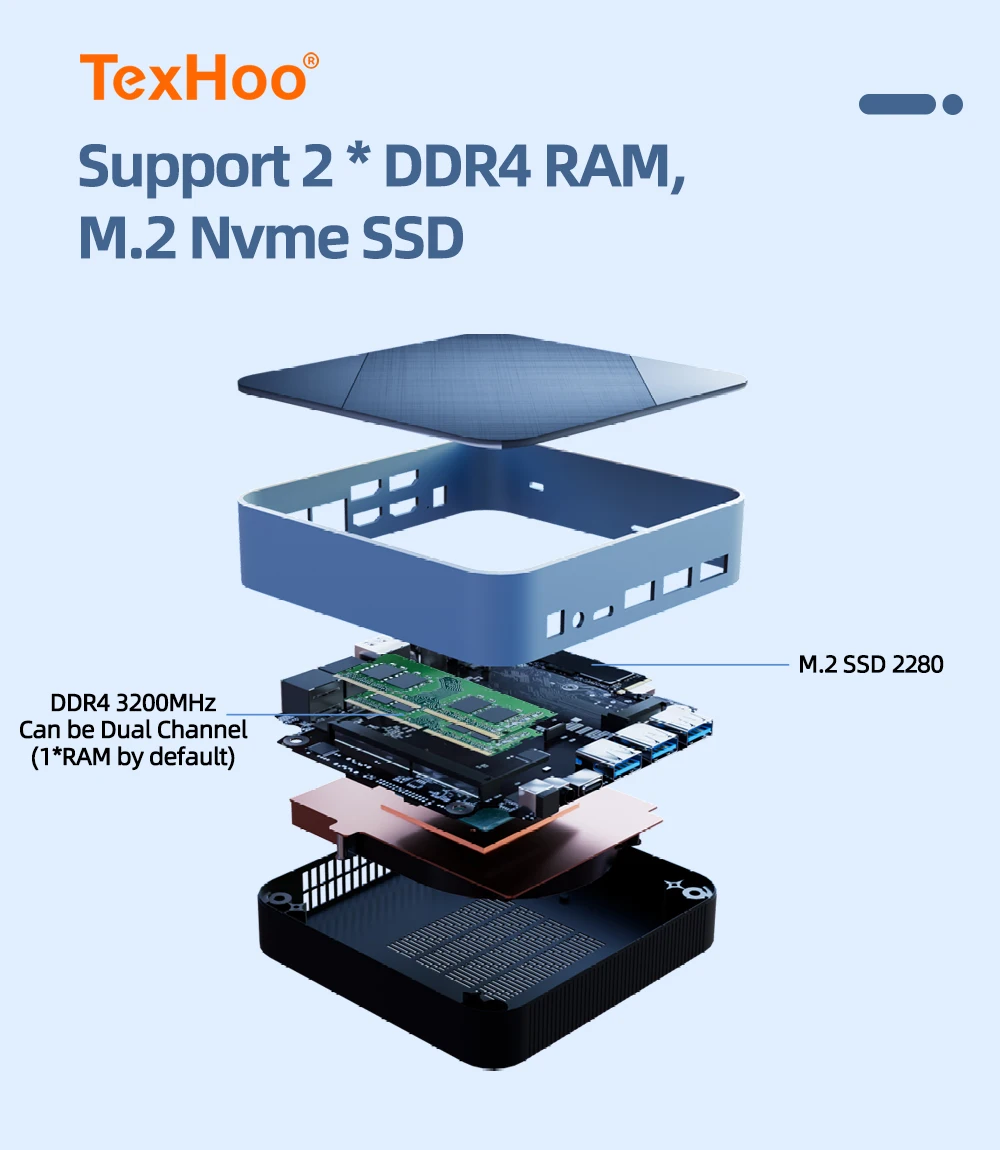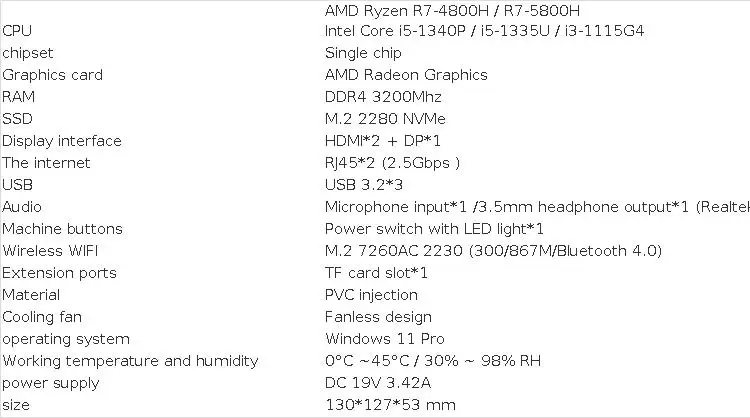 La porta di rete del mini PC R7-4800H è 1G LAN*2, TIPO-C non può supportare la funzione di visualizzazione, anche non può espandere SSD SATA da 2,5 pollici.