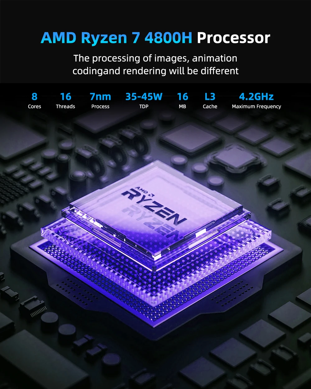 R7-4800H 8 core 16 fili 2,9 GHz ~ 4,2 GHz