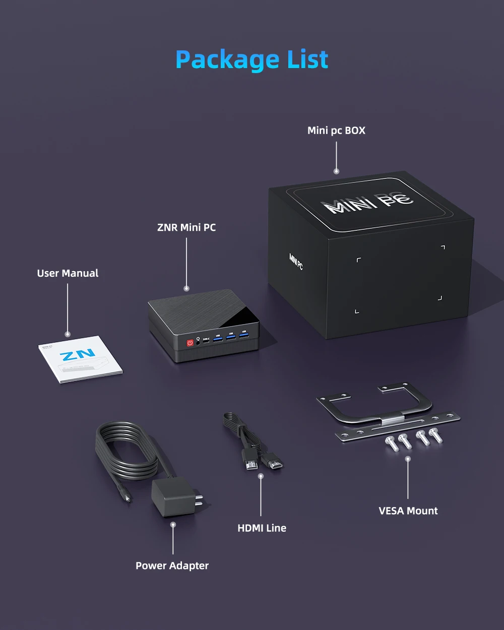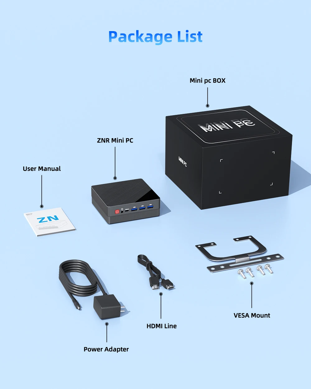 2.Se scegliere acquistare la prima opzione (No Ram No SSD), include cavo WiFi+SATA da 2,5 pollici, il prodotto non ha un modulo di memoria e un disco rigido installato e il sistema non è preinstallato.Gli acquirenti devono acquistare RAM e SSD per l’installazione e l’installazione del sistema Windows, si prega di confermare se l’acquisto della RAM e SSD sono compatibili con la macchina.