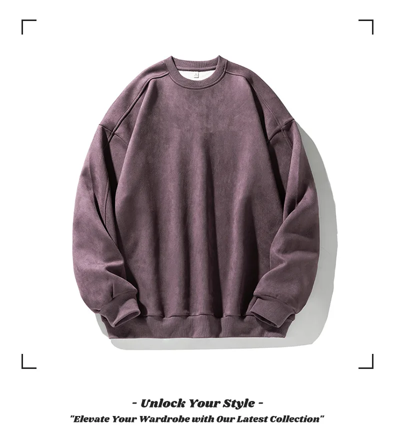 TFETTERS Marca Viola Felpa Uomo Pelle Scamosciata O Collo Autunno Inverno Baggy Uomo Felpe Casual Manica Lunga 2025 Nuovi Top Maschili