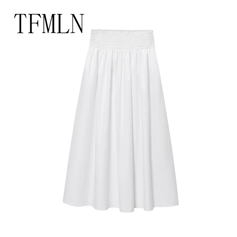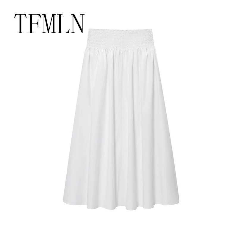 TFMLN Gonna elegante da donna abbinata a gonna bianca da donna chic Gonna casual con tasche da ragazza dolce Gonna di media lunghezza in vita elastica