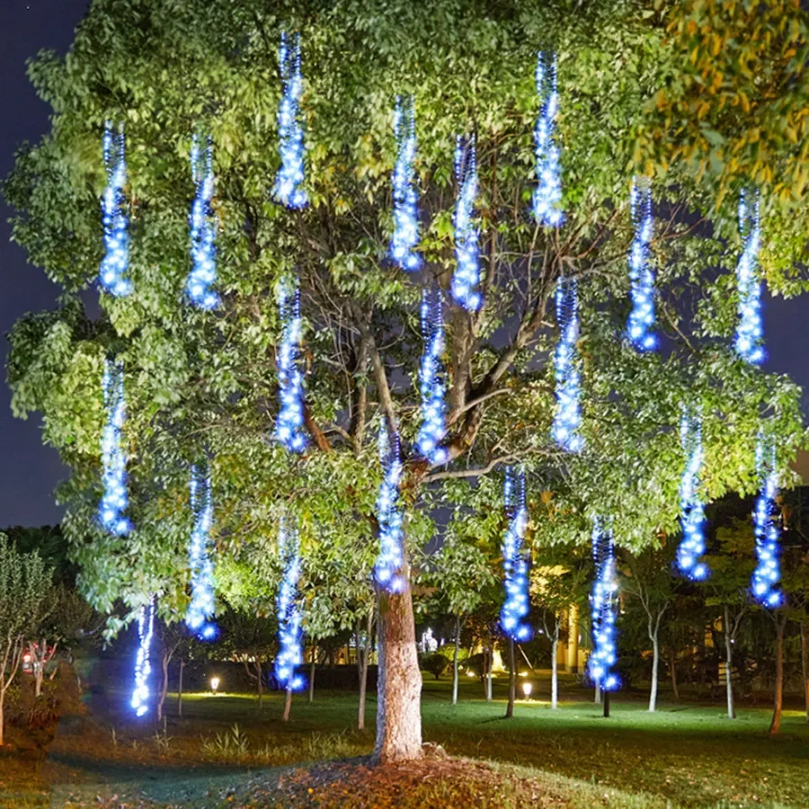 Thrisdar 6 IN1 Luci di ghiacciolo di Natale Pioggia di meteoriti per esterni Luce a pioggia Cascata Luce di stringa Luci di ghiacciolo a cascata per la decorazione dell’albero