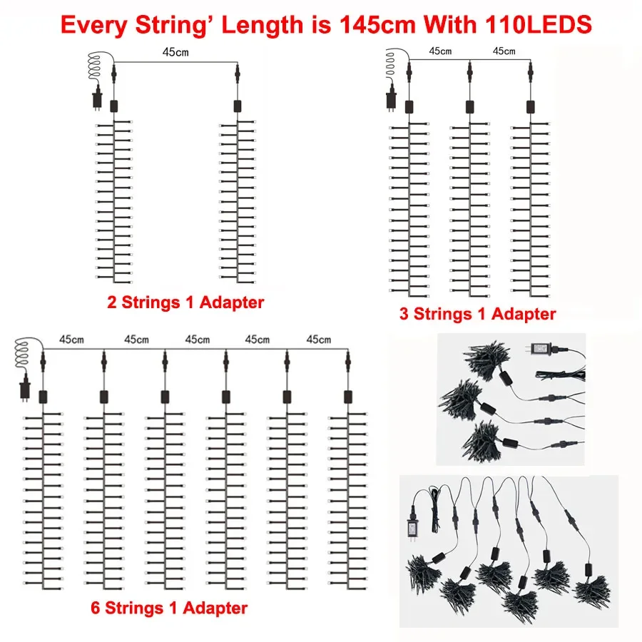 Lunghezza: 1,45 M 110 LED con adattatore 1 PC, 3X1,45 M 330 LED con 1 adattatore, 6X1,45 M 330 LED con 1 adattatore