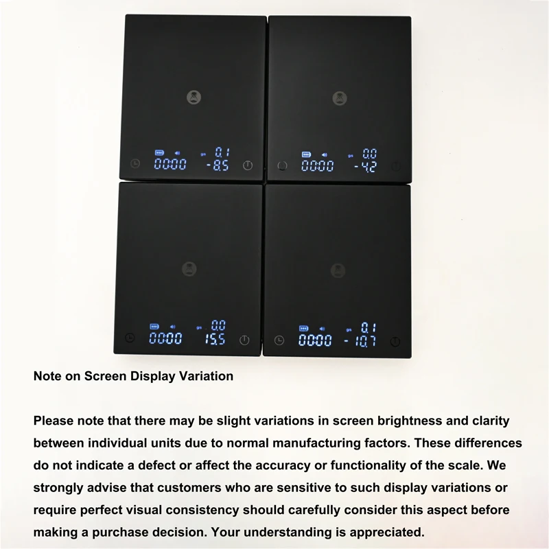 Si prega di notare che la bilancia Timemore Black Mirror è progettata come strumento di pesatura altamente sensibile.Come risultato, l’esposizione può mostrare occasionalmente le fluctuazioni minori, che possono essere influenzate da vari fattori ambientali.Questi non indicano una malfunzione o difetti.