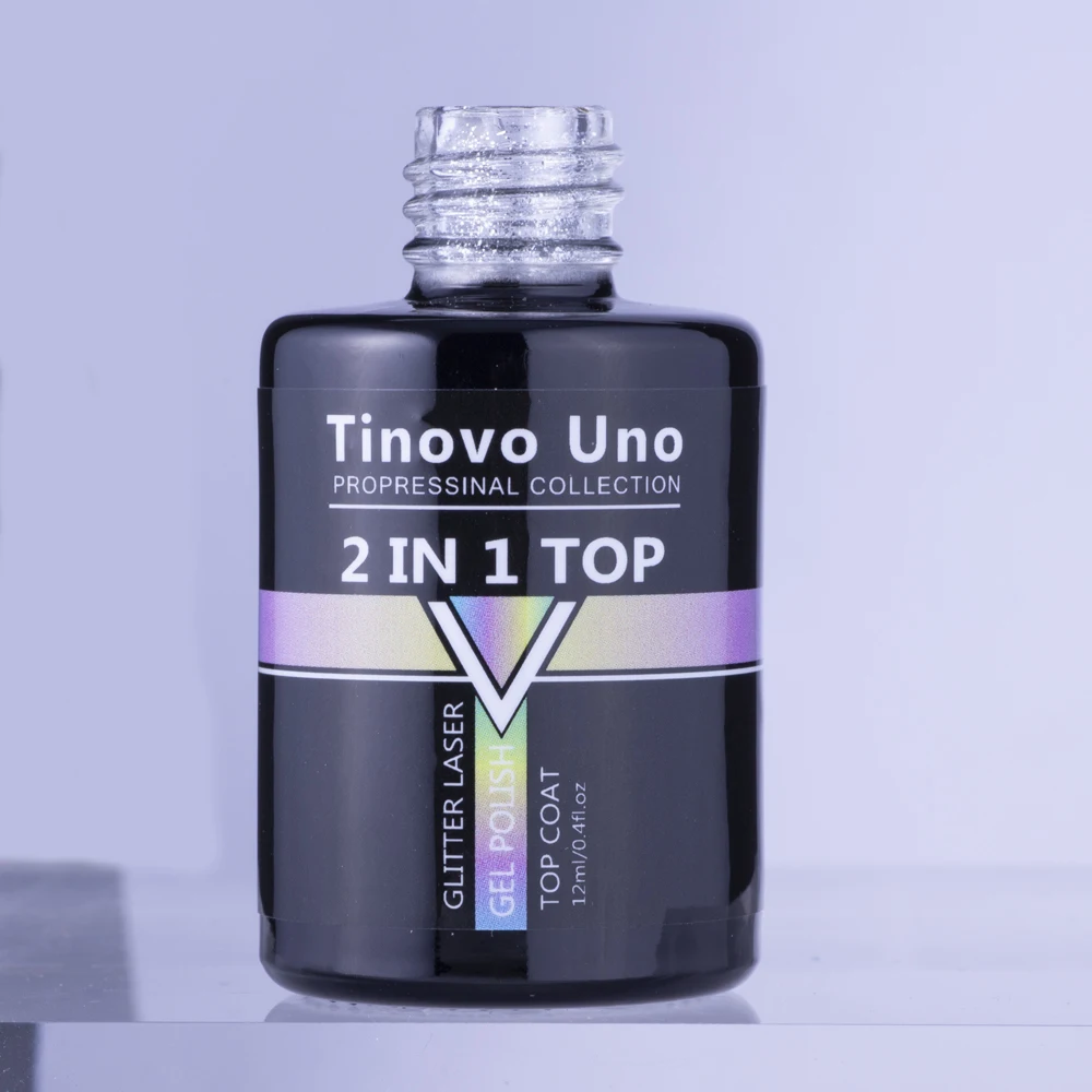 Tinovo Uno Glitter Top Coat Smalto per unghie gel UV 2 IN 1 12ML Super Shine Laser Toppcoat Manicure Vernis Finitura gel semipermanente