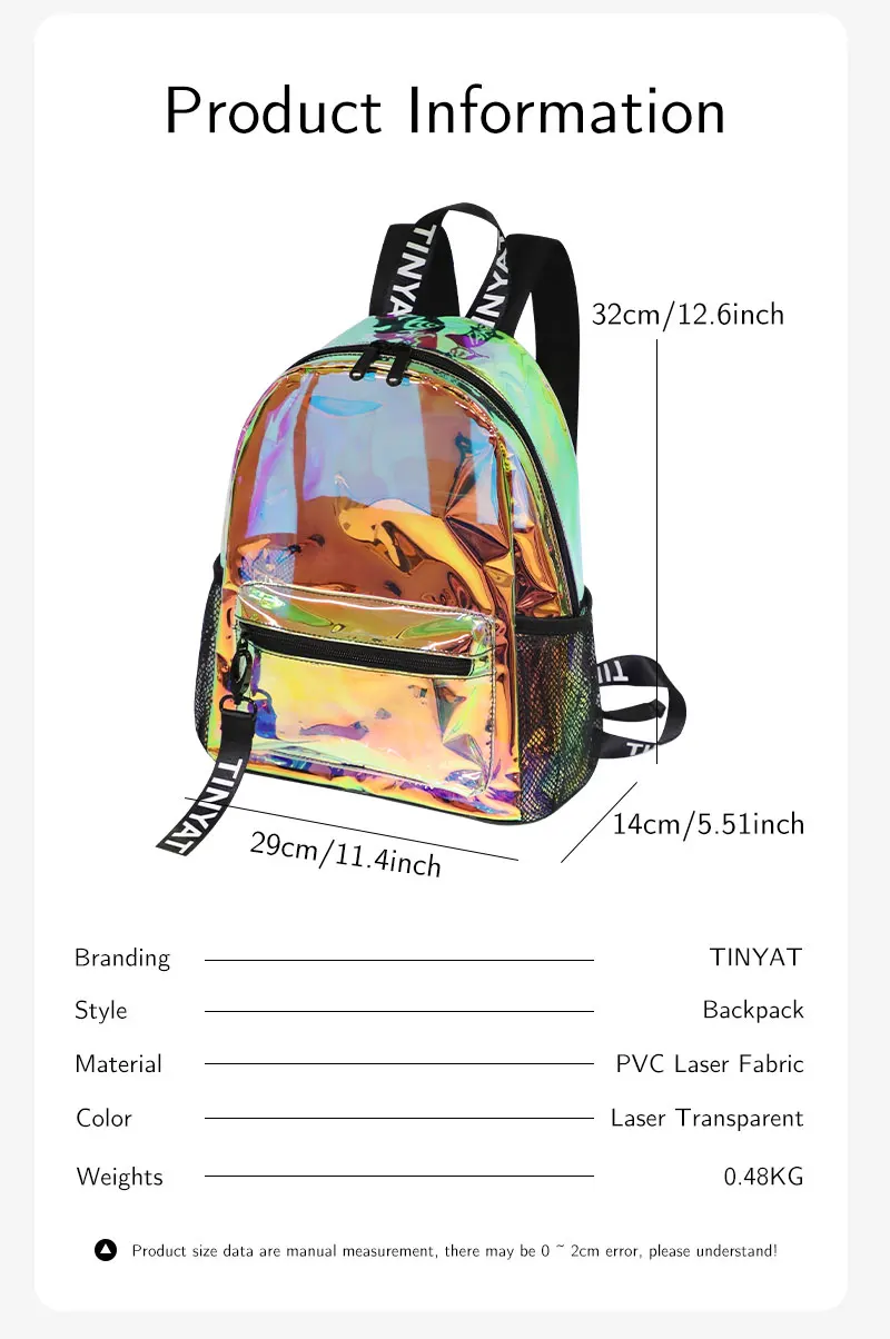 TINYAT Zaini trasparenti in PVC per donna Elegante borsa da scuola resistente all’acqua per festival musicali Borsa ita per un facile ispezione durante i viaggi