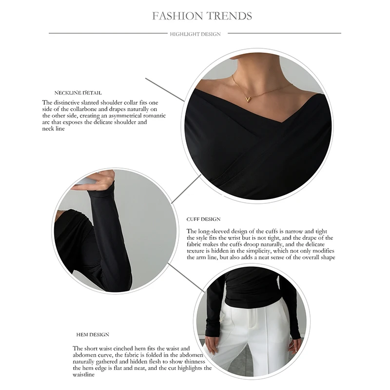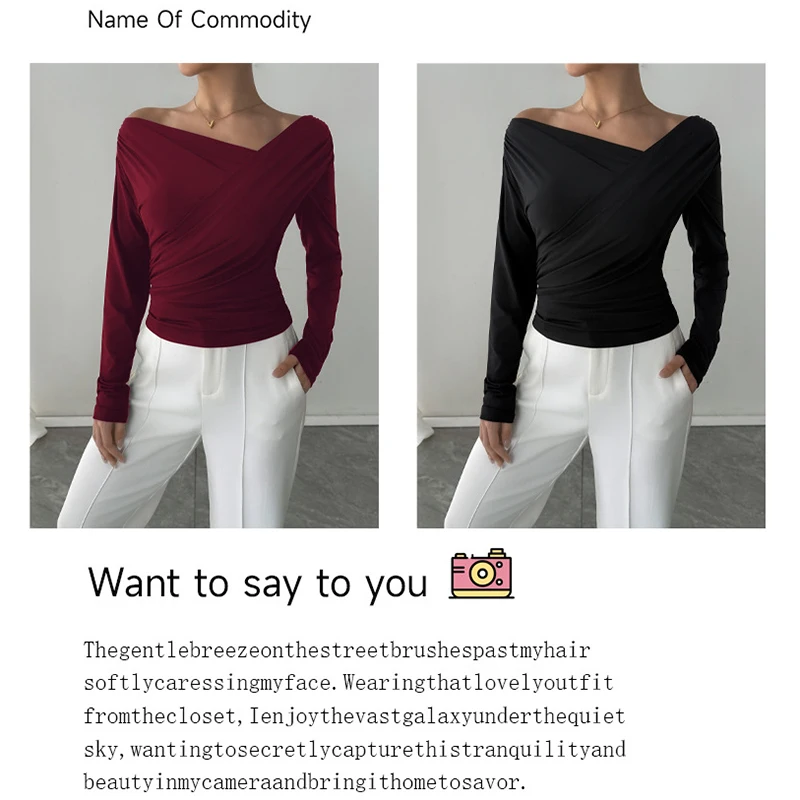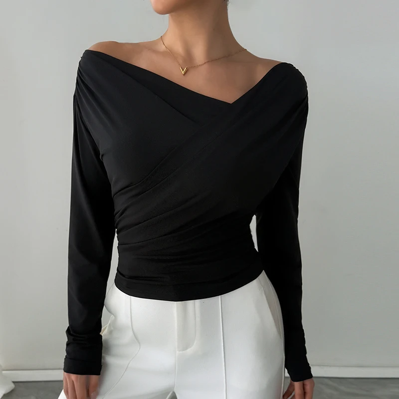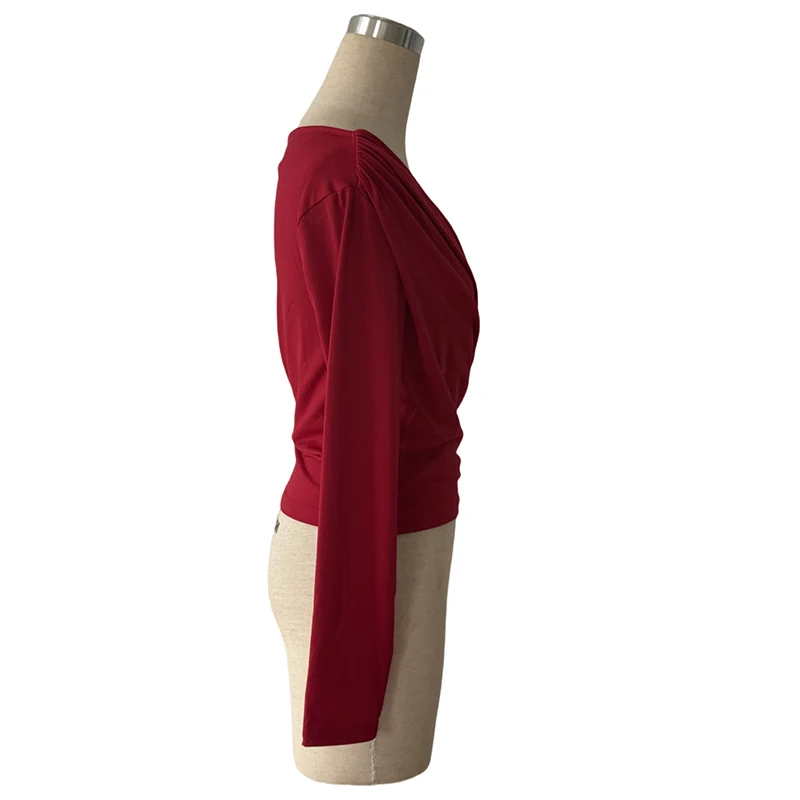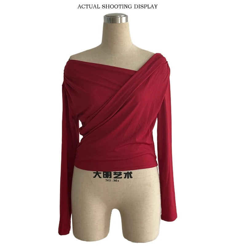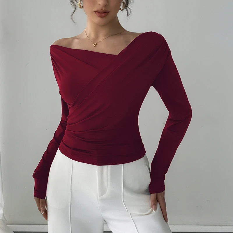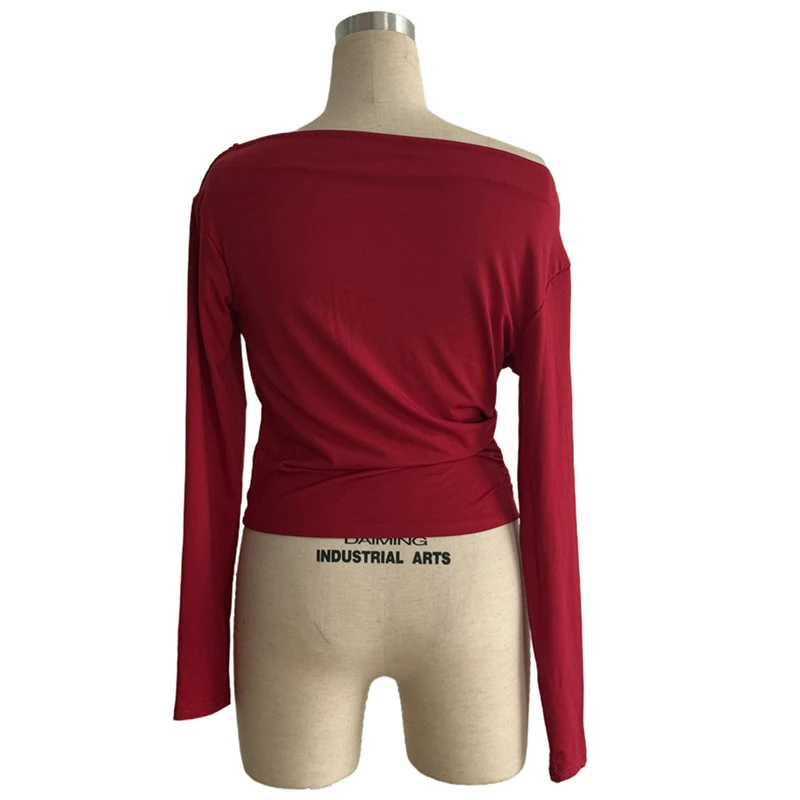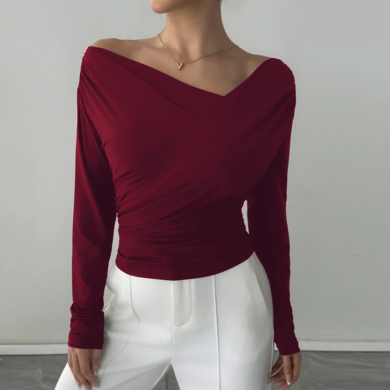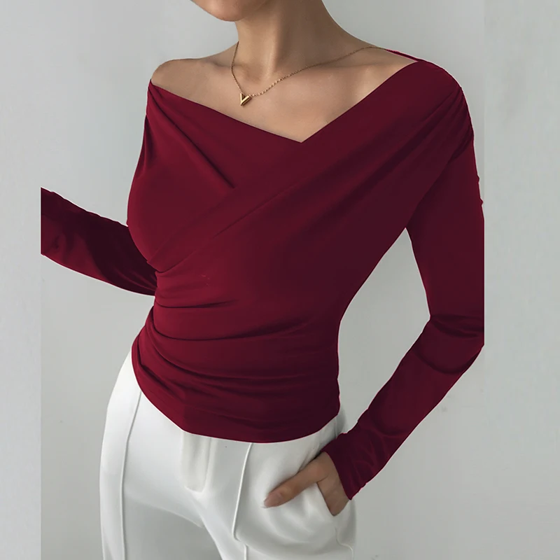 Top a maniche lunghe tinta unita moda donna T-shirt da ufficio femminile per donna Camicia elegante da donna autunnale Camicia basic rossa nera