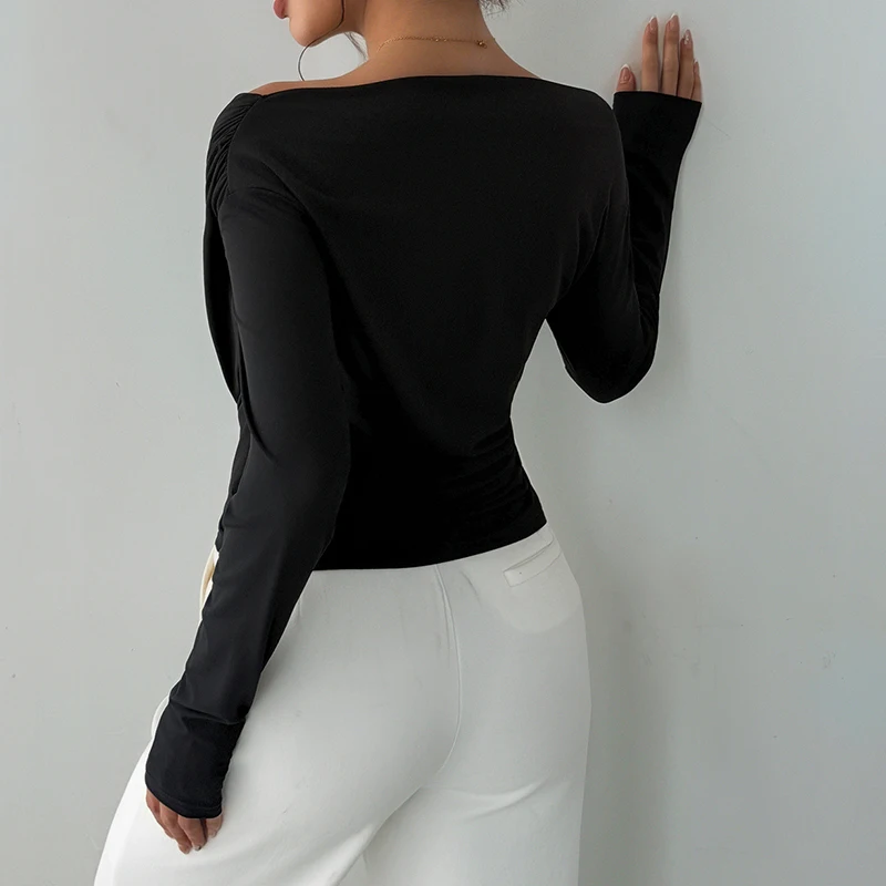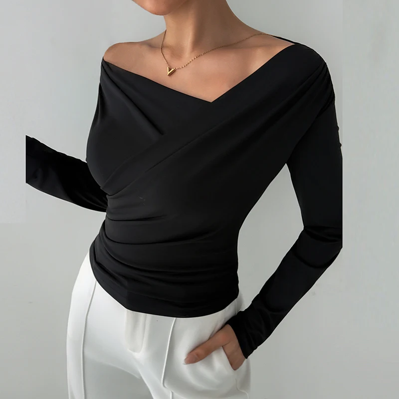 Top a maniche lunghe tinta unita moda donna T-shirt da ufficio femminile per donna Camicia elegante da donna autunnale Camicia basic rossa nera