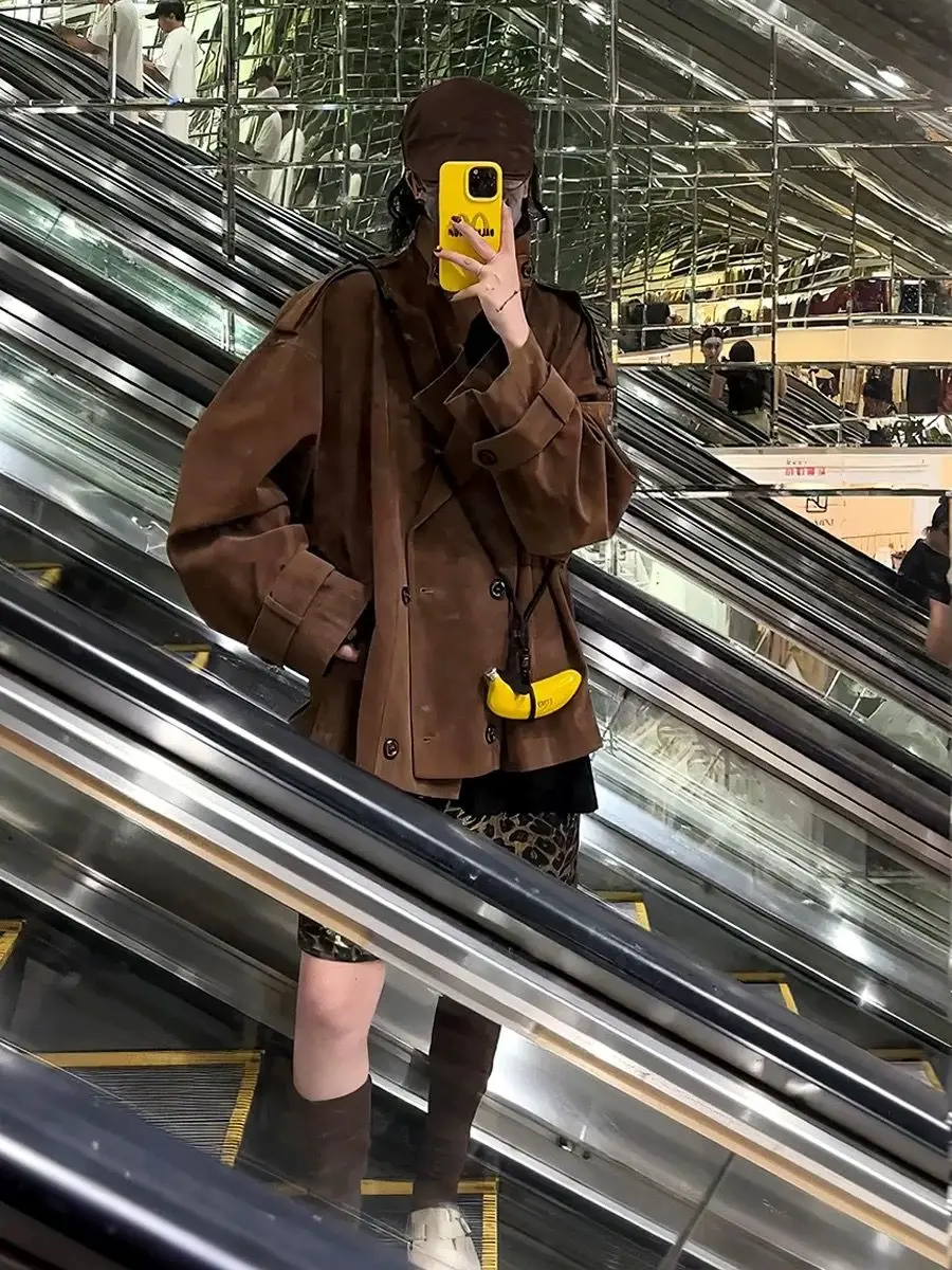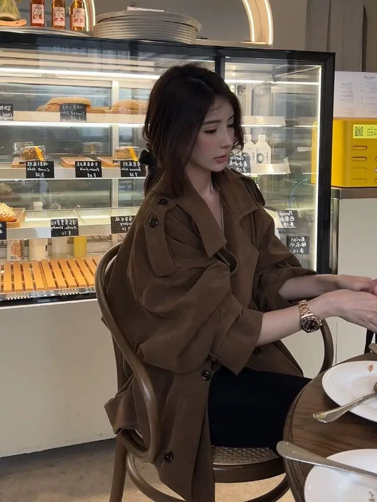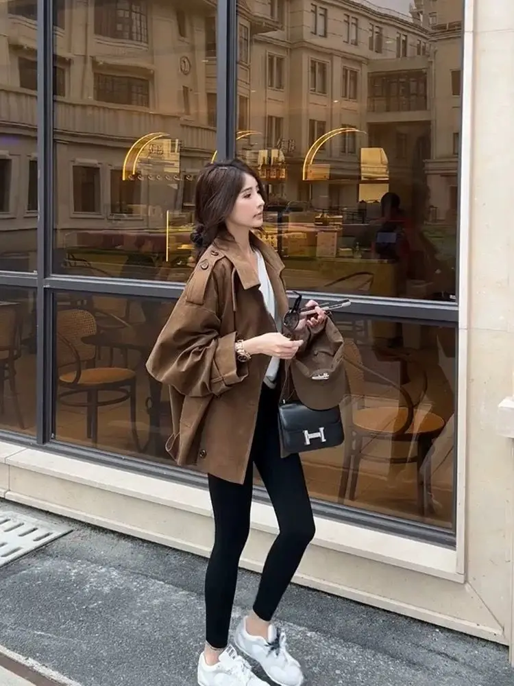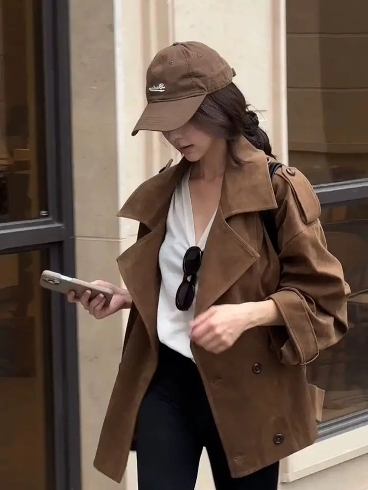 Top autunno inverno da donna cappotto colletto in piedi pelle scamosciata vintage semplice confortevole sciolto design casual moda nicchia versatile
