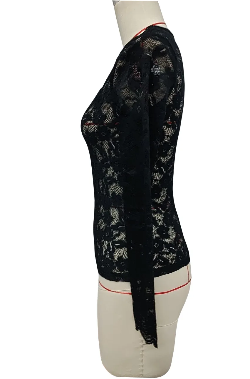 Top da donna a maniche lunghe in rete Top sexy con scollo a V e scollo a V V Vedi attraverso magliette Y2K Street Going Out Party Club Night Camicetta di pizzo