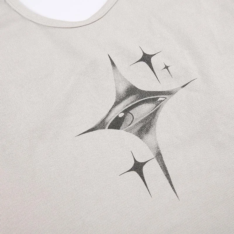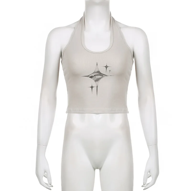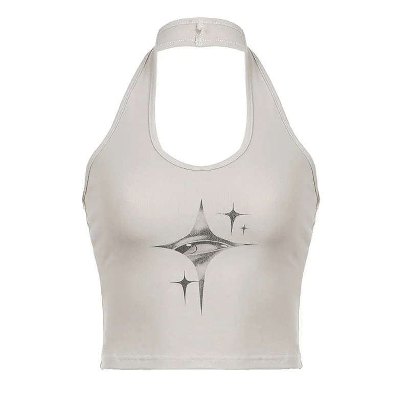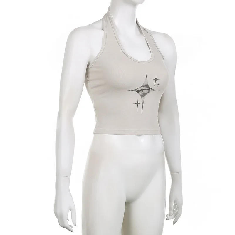 Top donna Y2k devil’s Eyes Retro Print Hanging Neck bretella gilet donna estate moda coreana Slim e dimagrante Top corto