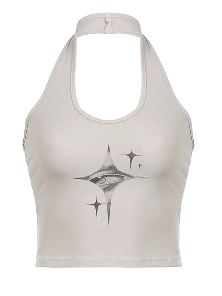 Top donna Y2k devil’s Eyes Retro Print Hanging Neck bretella gilet donna estate moda coreana Slim e dimagrante Top corto