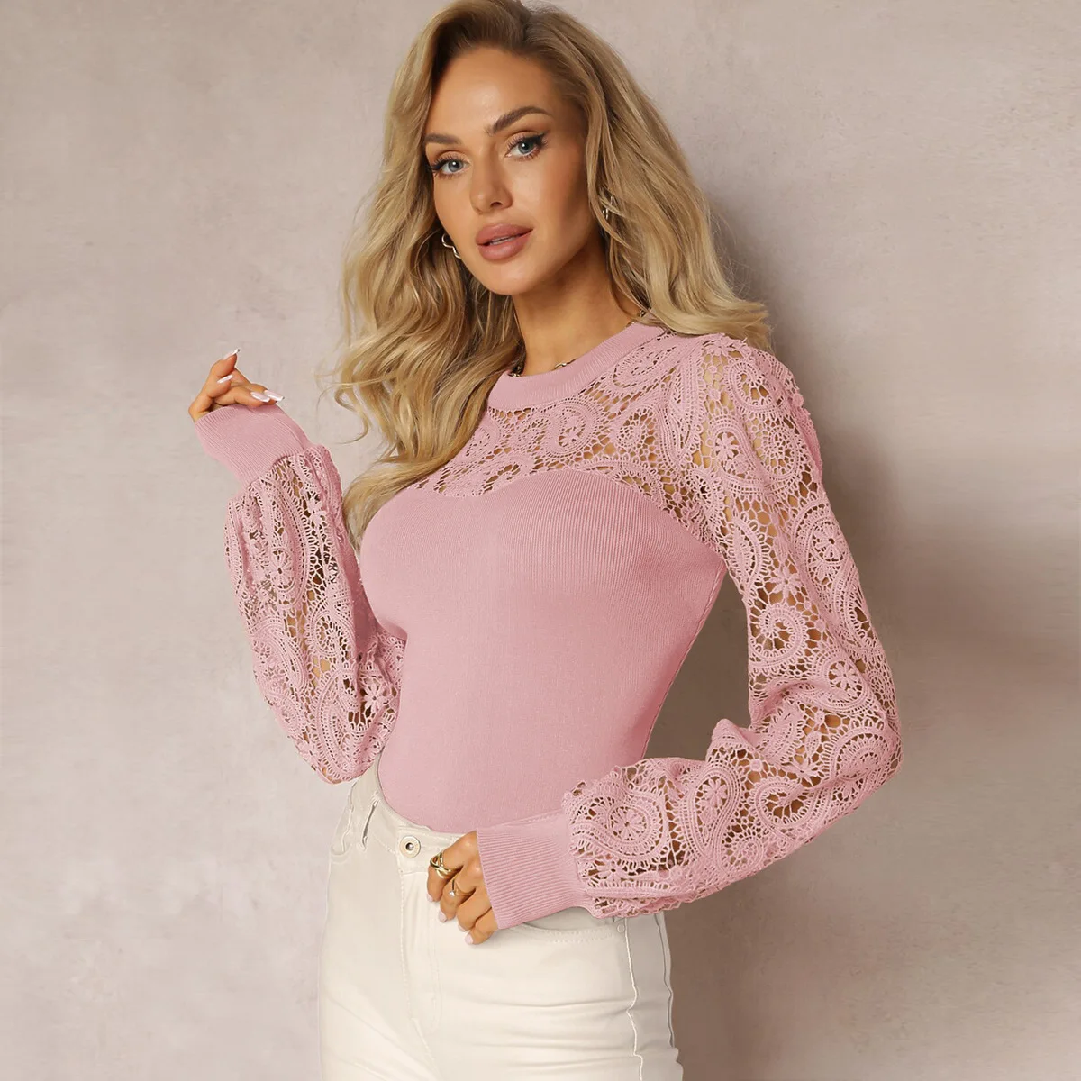 Top in pizzo Sexy da donna camicette eleganti Casual a maniche lunghe camicie, magliette aderenti in rete a canotta solide e floreali