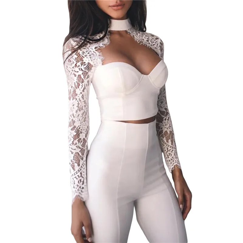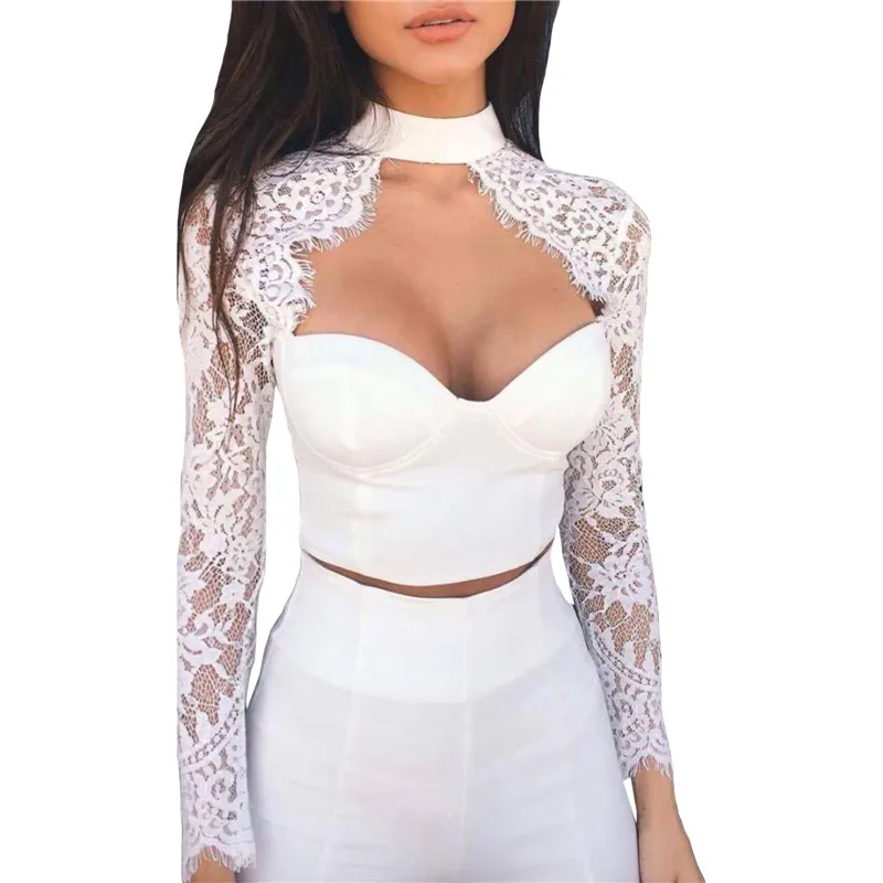 Top sexy patchwork in pizzo per donna manica lunga push up top corto trasparente donna estate primavera camicette slim taglio basso