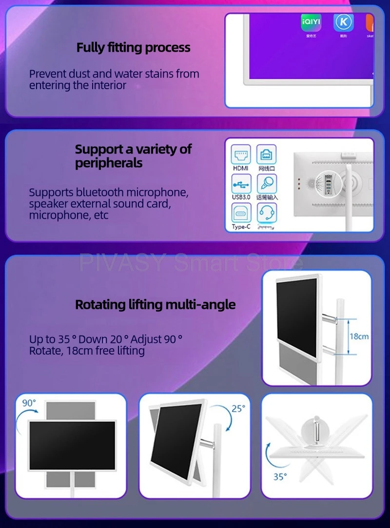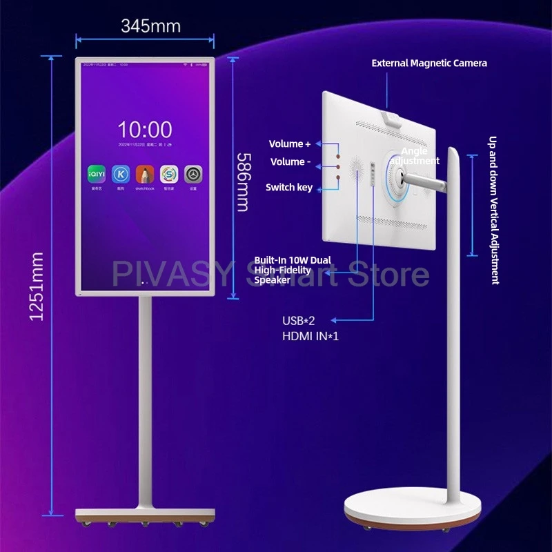 Touch Screen Monitor mobile girevole Smart TV da 21,5/31,1 pollici per giochi fitness interattivi con supporto da pavimento Batteria girevole