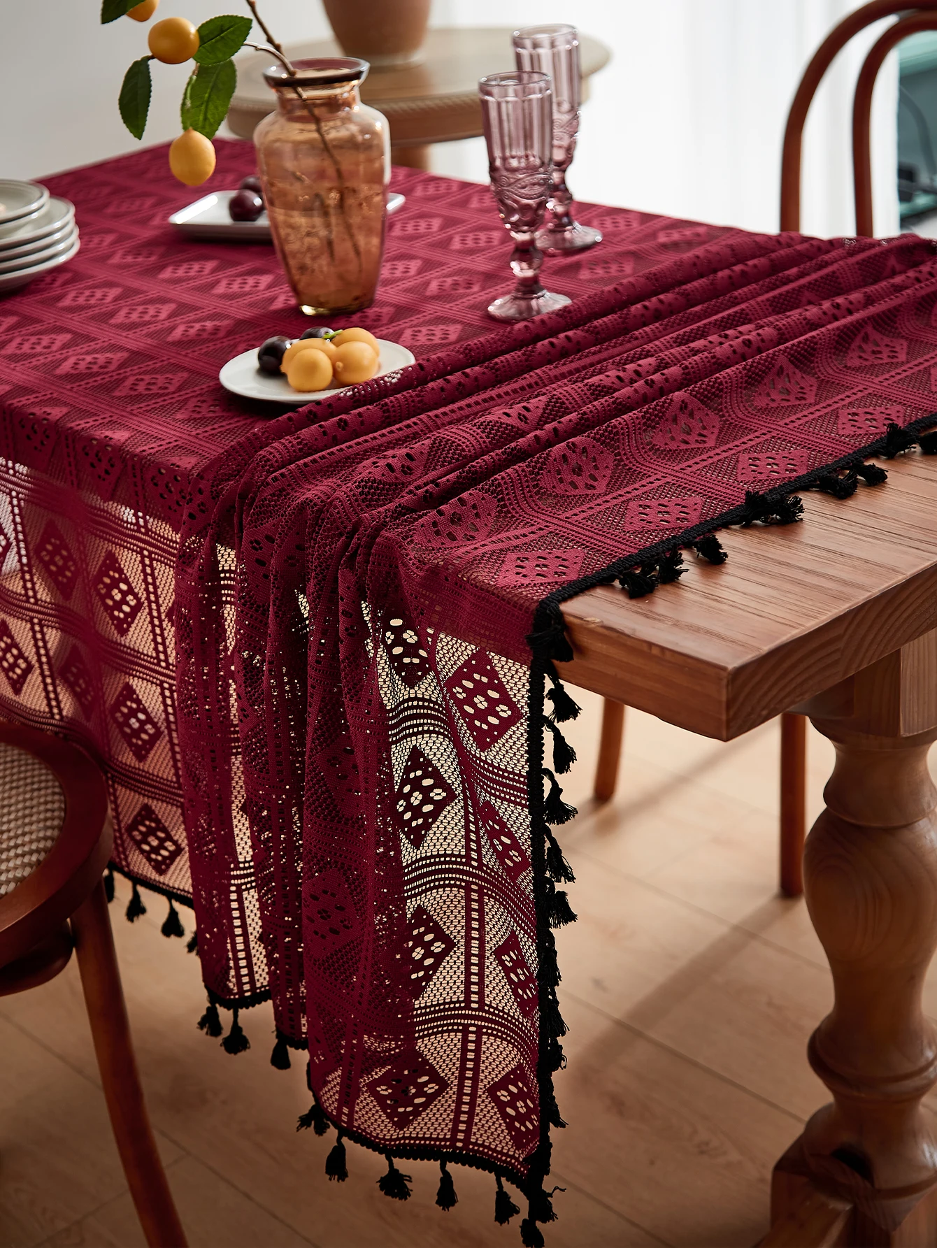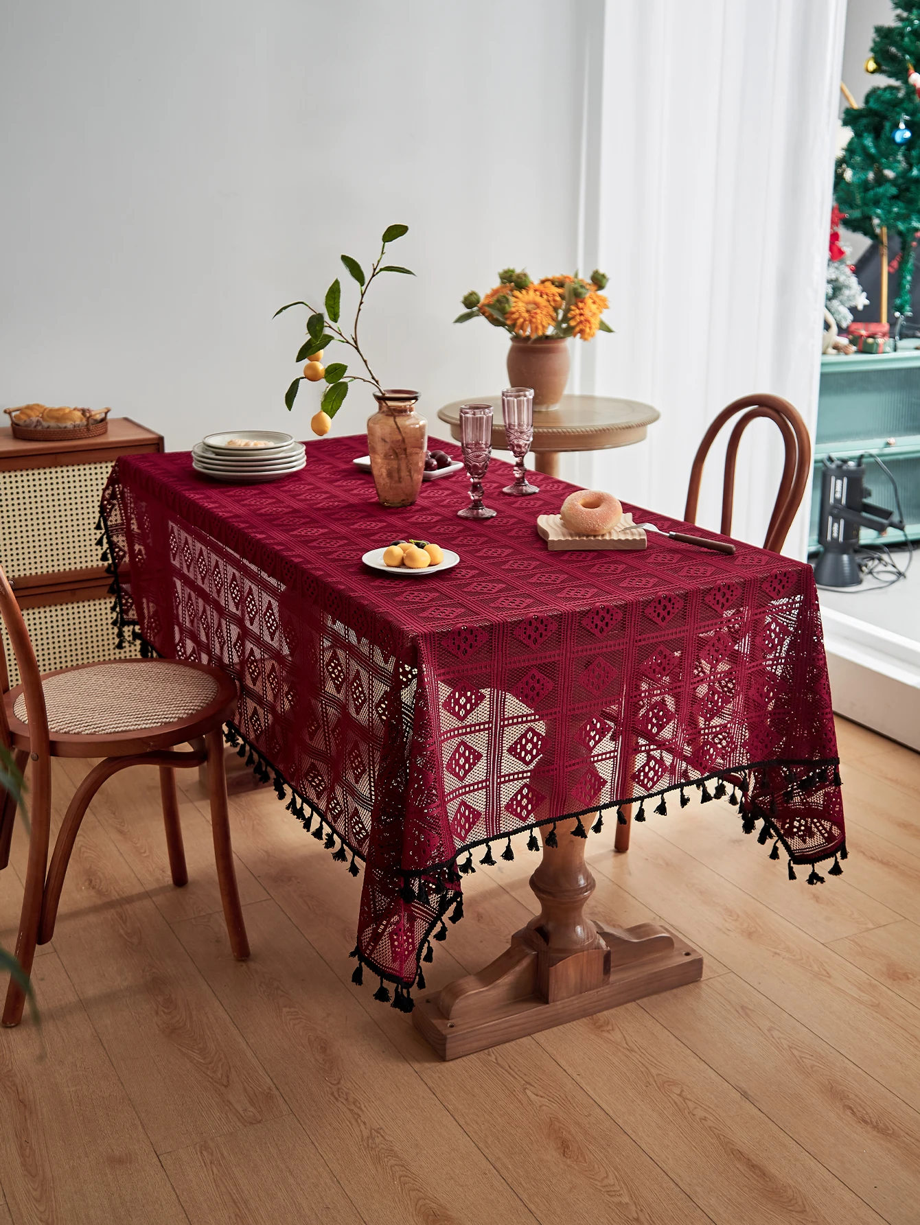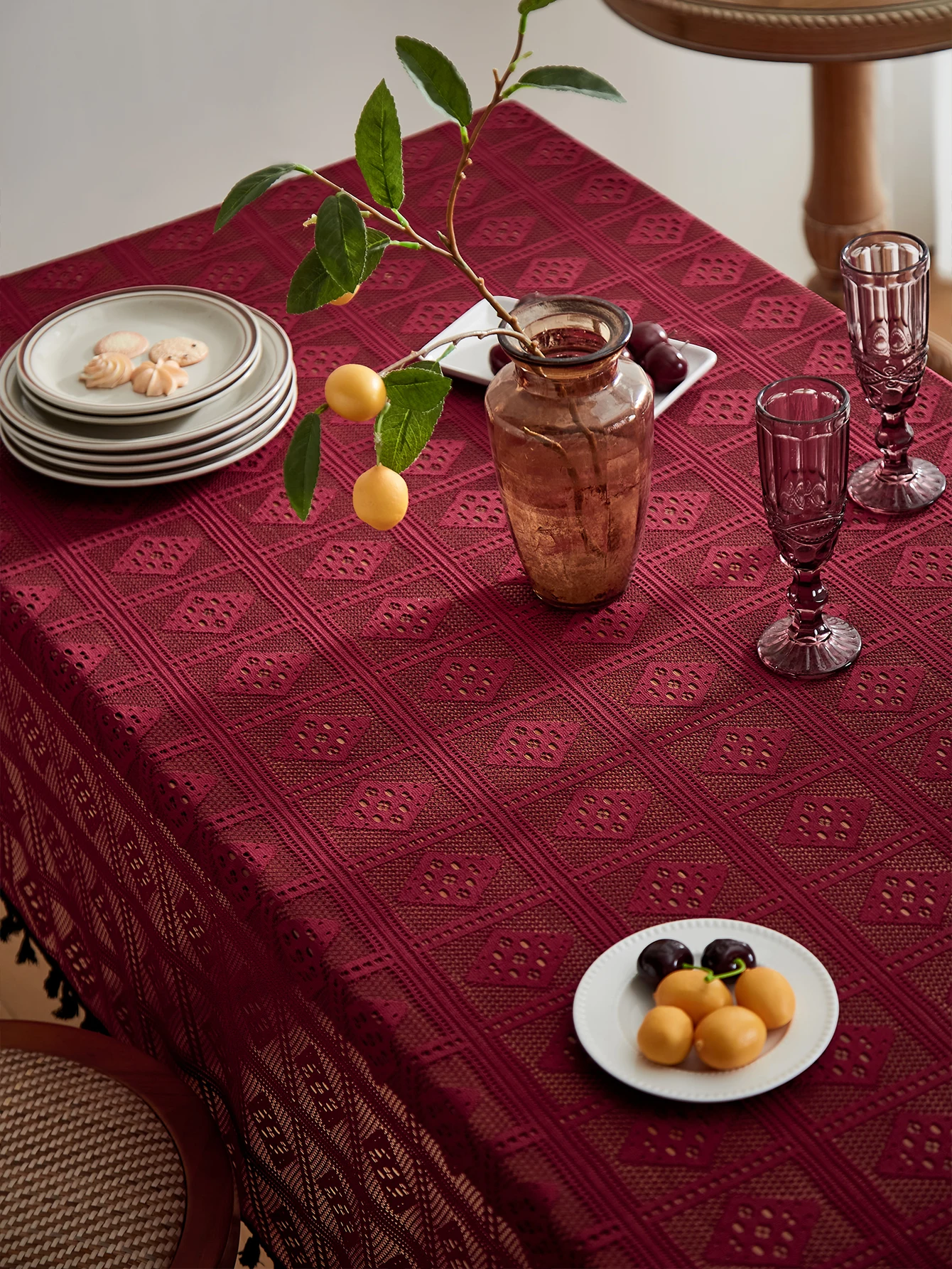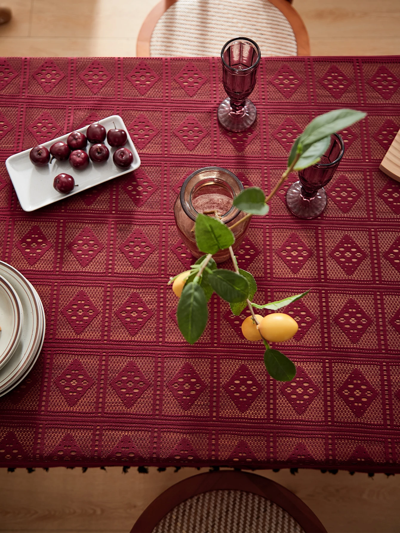 Tovaglia natalizia rossa da cucina Tovaglie vintage con diamanti per tavoli rettangolari o decorazioni per matrimoni, banchetti, feste, cene