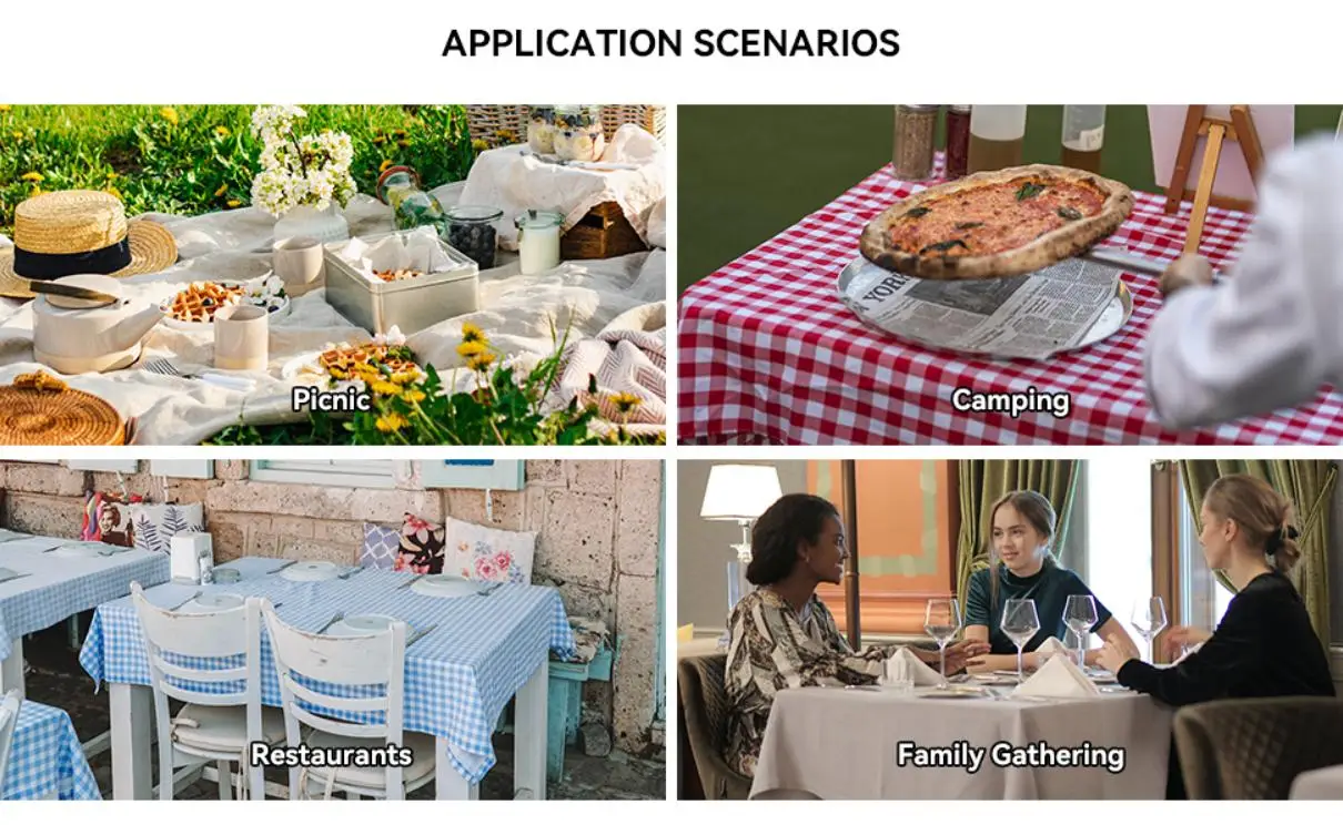 Usa scenari: cucina, ristorante, caffetteria, festa, picnic all’aperto, terrazza, giardino, banchetto, anniversario, evento festivo, festa di benvenuto, qualsiasi scena all’aperto familiare