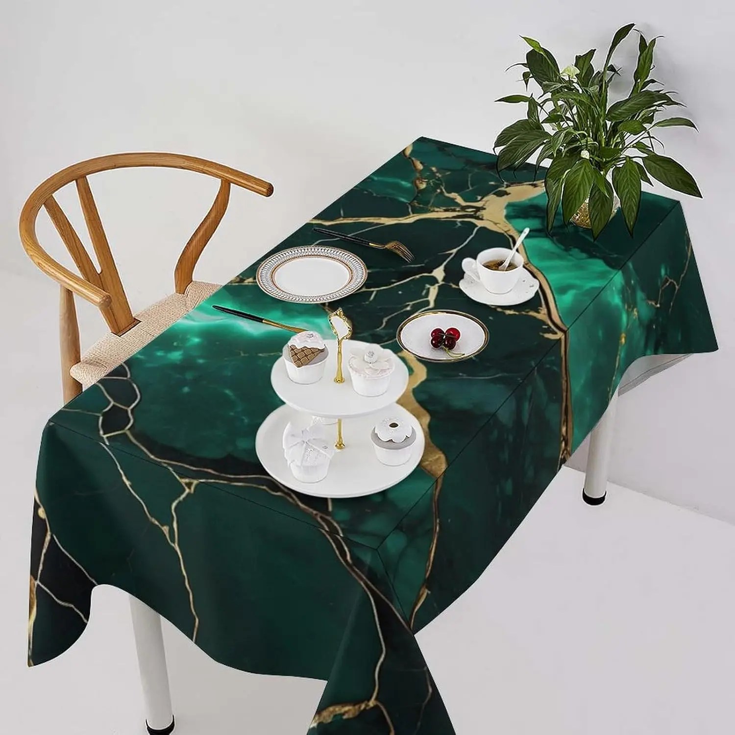 Tovaglia rettangolare con struttura in marmo, decorazioni per feste, riutilizzabili, tovaglie in marmo verde ciano, oro, cucina, tavolo da pranzo