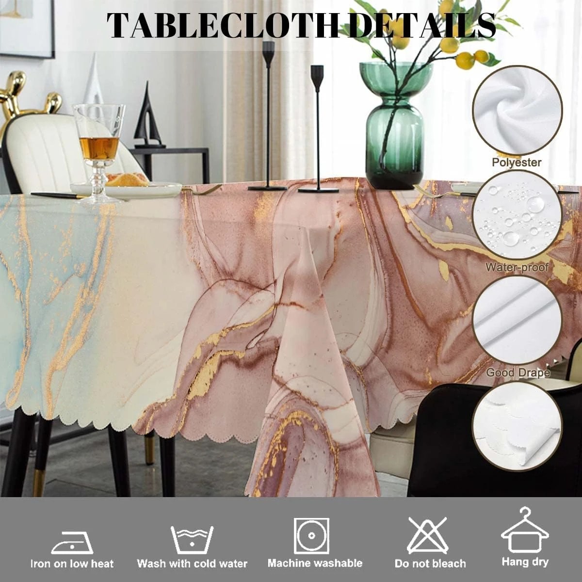 2 recensioni per Tovaglia rettangolare in marmo con onde dorate rosa Decorazioni per feste Tovaglia da pranzo riutilizzabile impermeabile per cucina Decorazioni di nozze