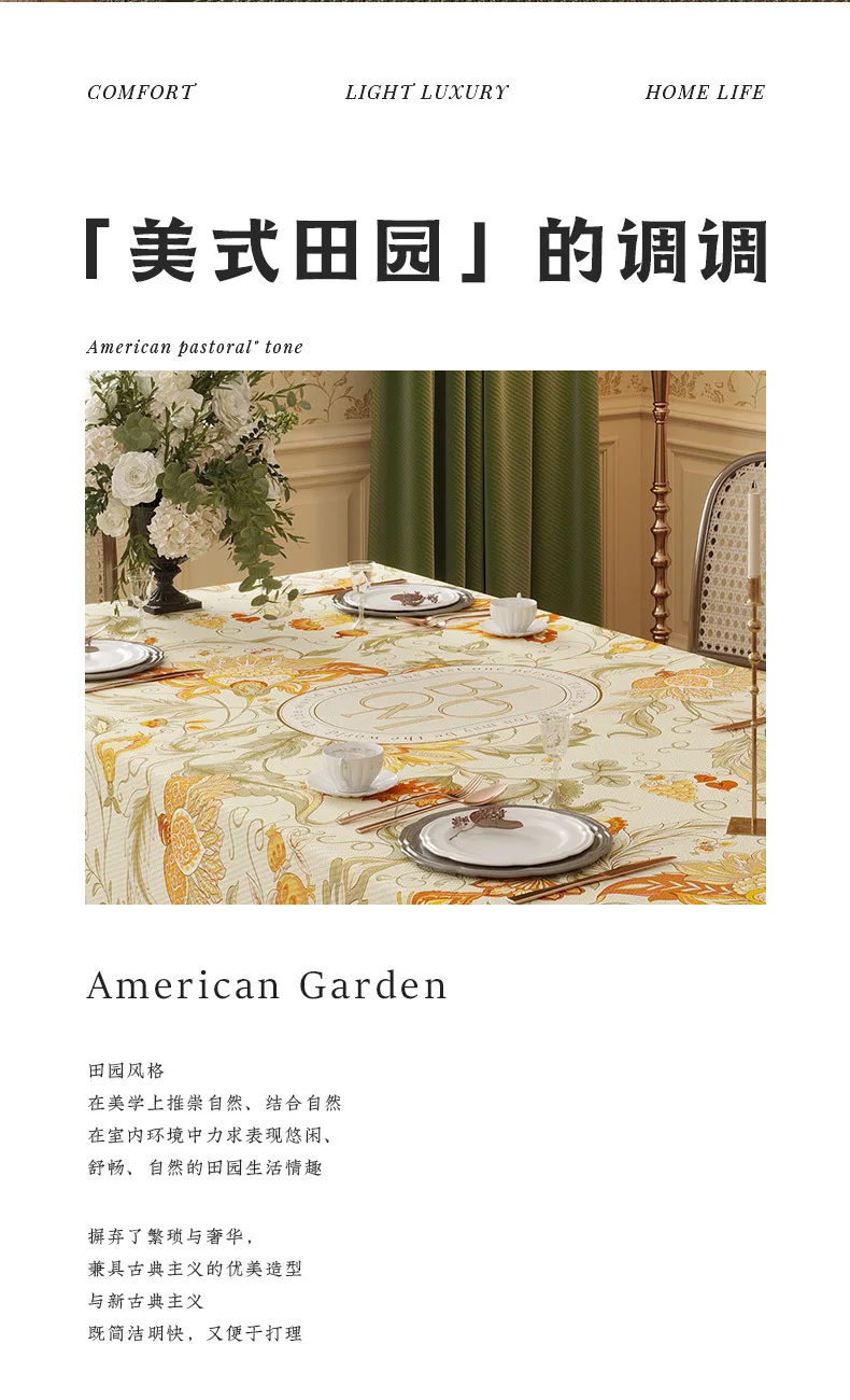 Tovaglia rurale americana leggera di lusso tovaglia senso senior tovaglia rettangolare impermeabile atmosfera sensazione tovaglia rotonda