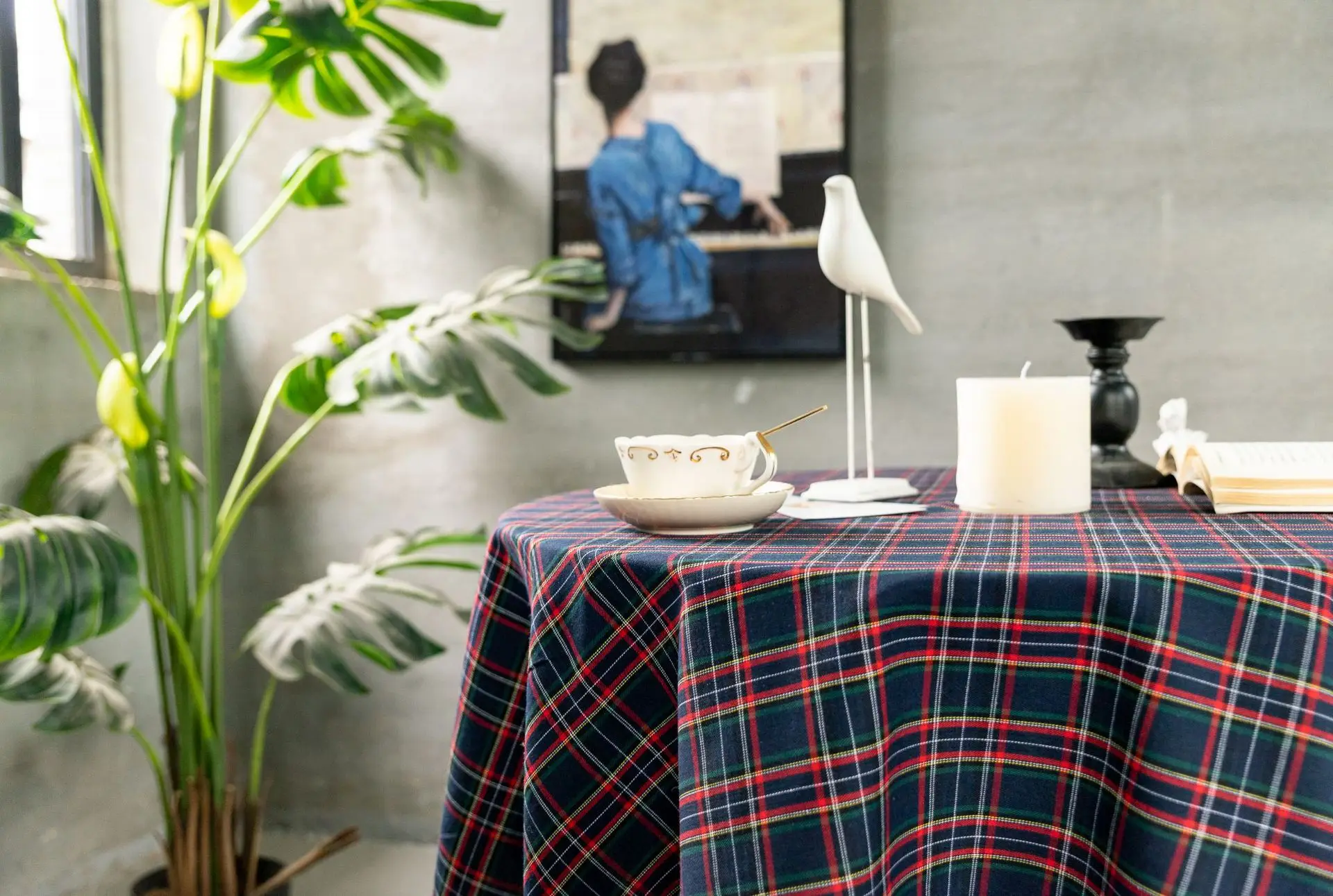Tovaglia scozzese Tovaglia a quadretti a righe retrò Decorazione per soggiorno e tavolo da pranzo per feste di Natale