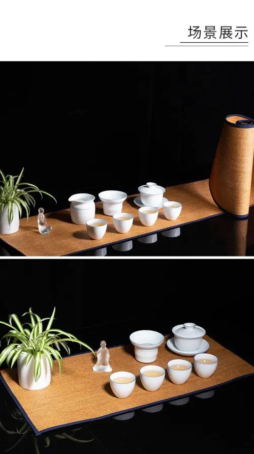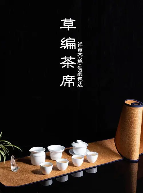 Tovaglietta da tè in canapa di cotone intrecciato con paglia Tovaglia impermeabile in tessuto Zen per cerimonia del tè cinese, accessori per set da tè kung fu