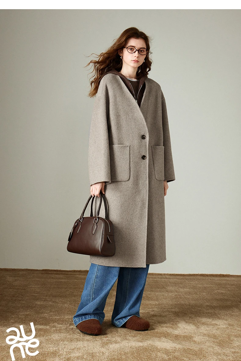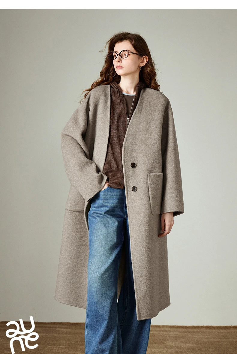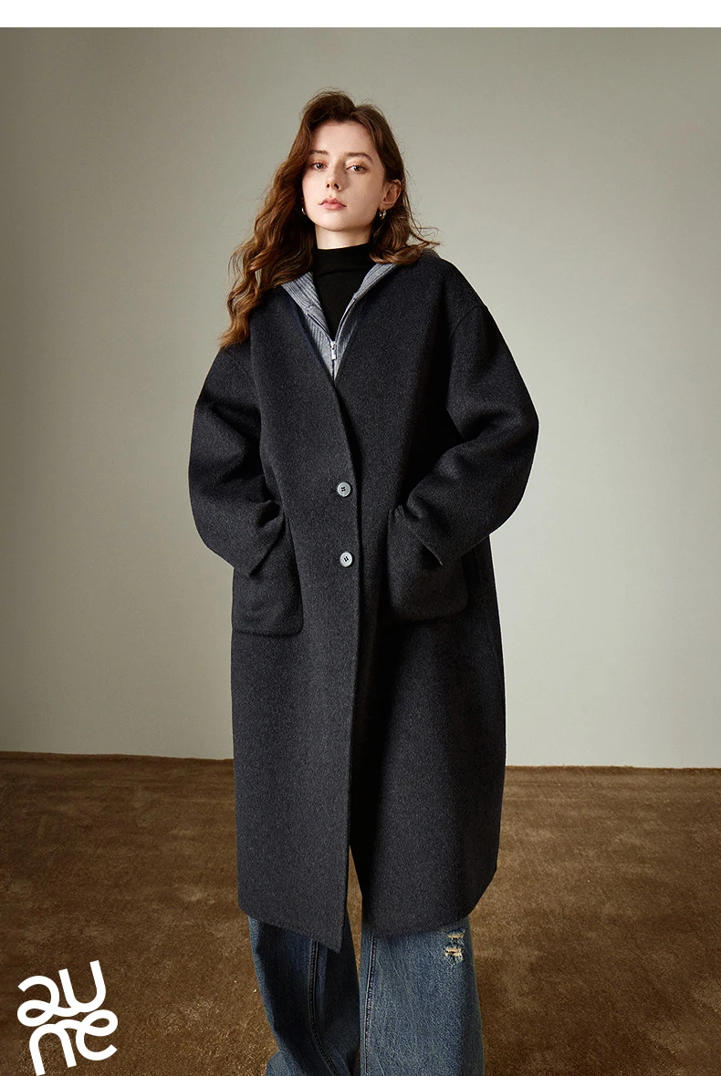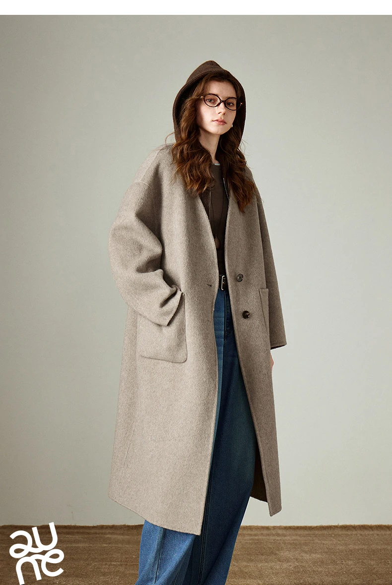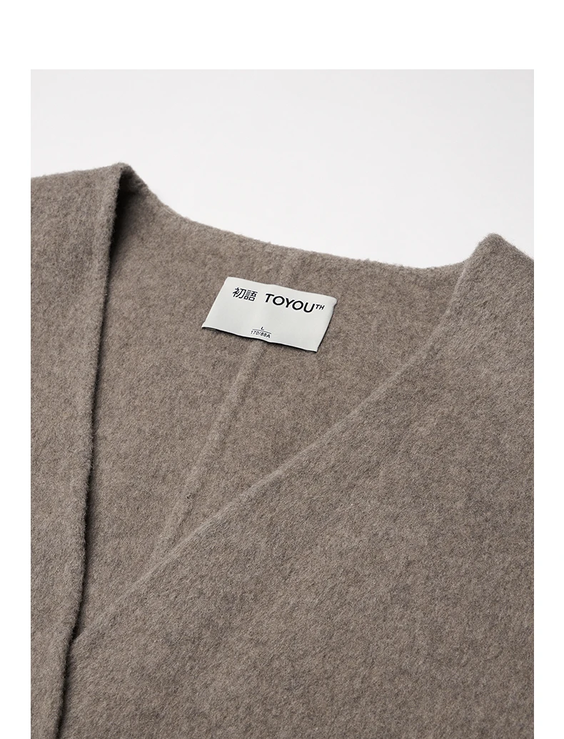 TOYOUTH Cappotto di lana da donna 2025 Inverno Nuovo scollo a V di media lunghezza Cappotto da donna retrò Cammello Nero Grigio