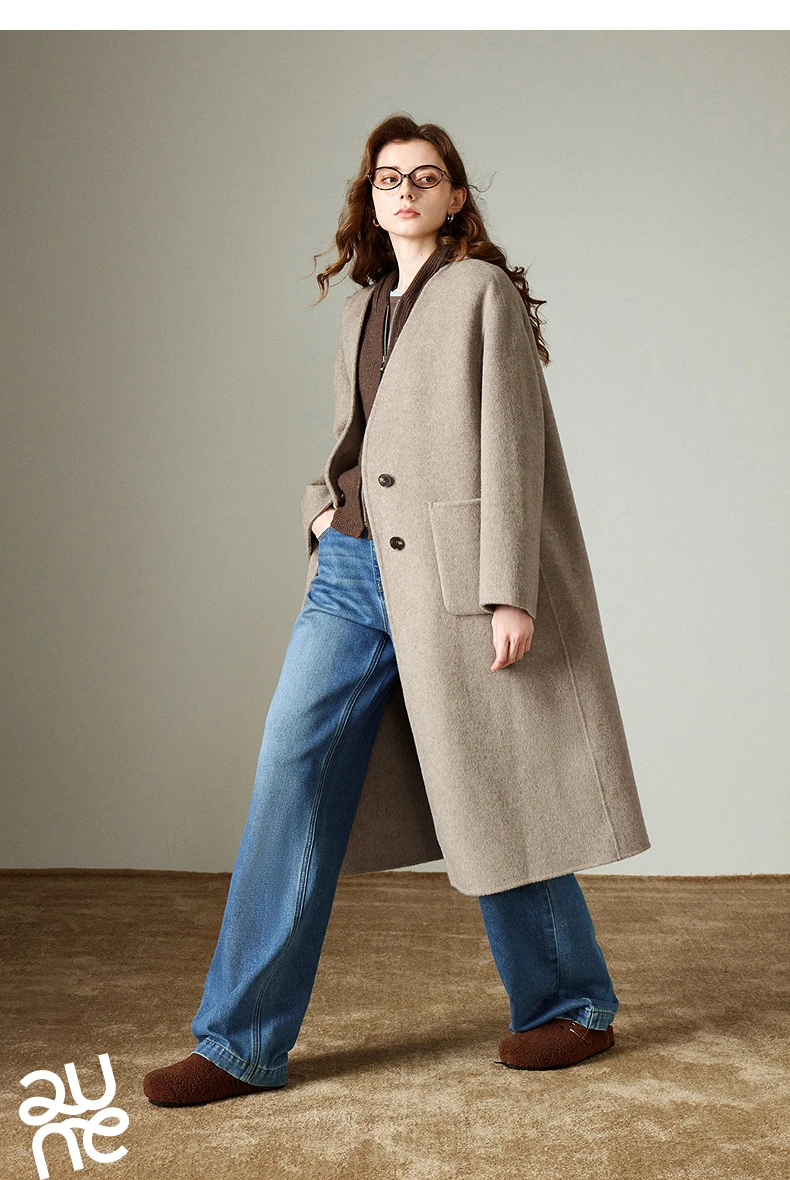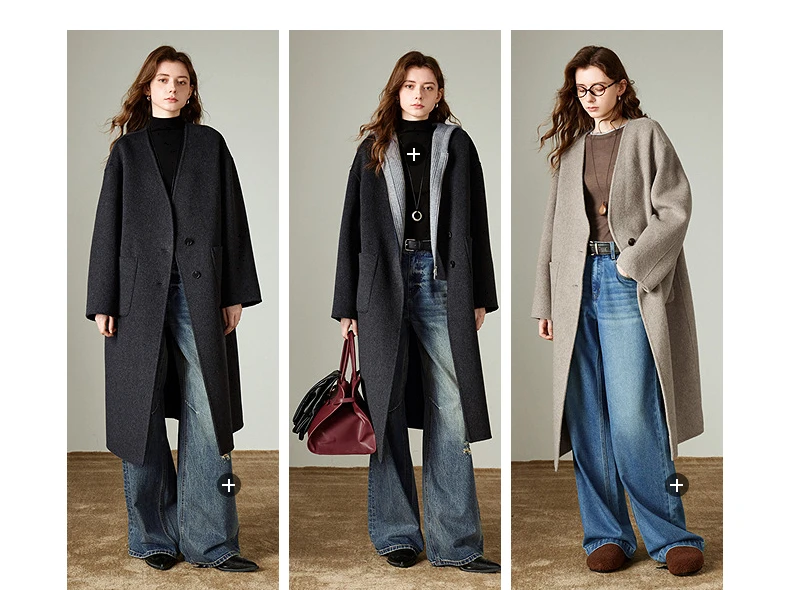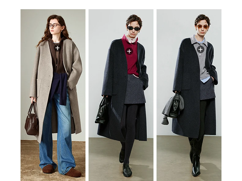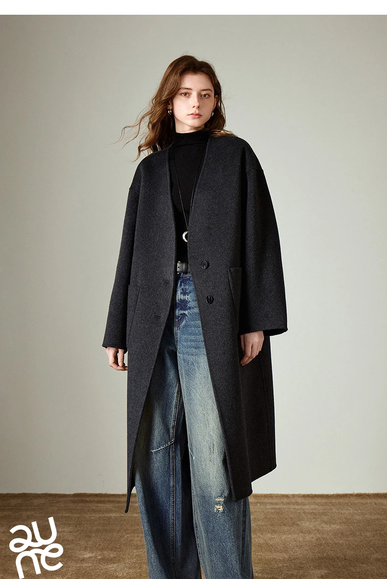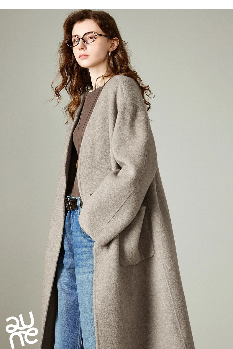 TOYOUTH Cappotto di lana da donna 2025 Inverno Nuovo scollo a V di media lunghezza Cappotto da donna retrò Cammello Nero Grigio