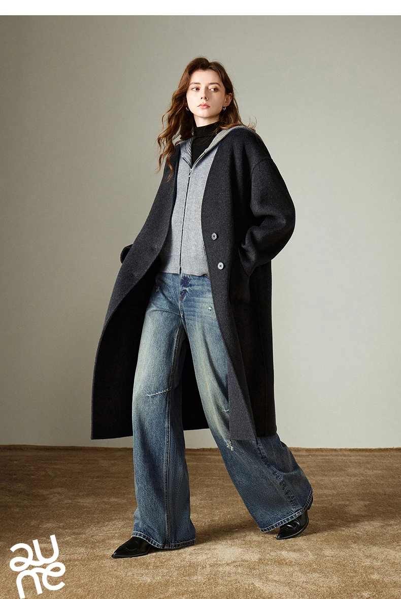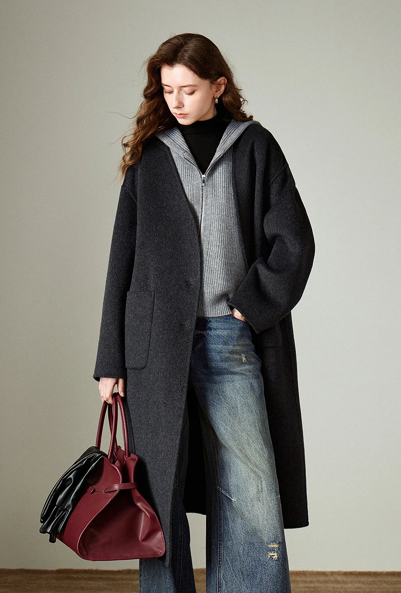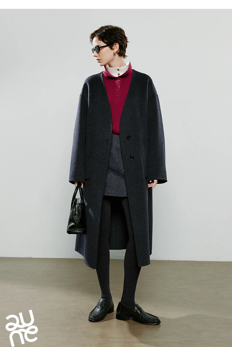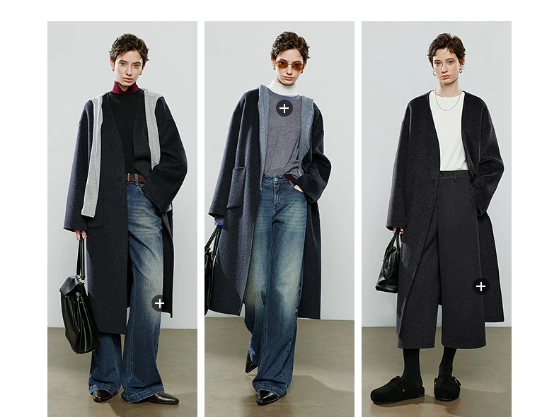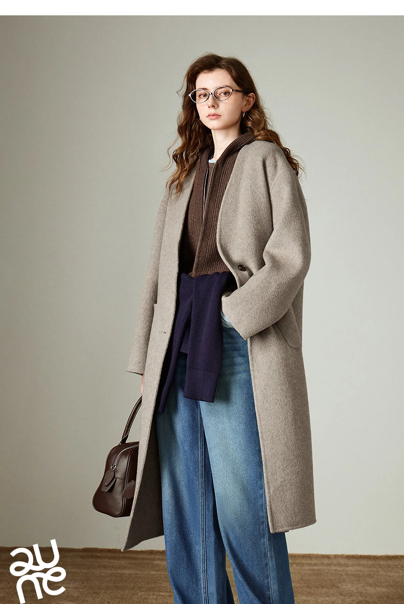 TOYOUTH Cappotto di lana da donna 2025 Inverno Nuovo scollo a V di media lunghezza Cappotto da donna retrò Cammello Nero Grigio