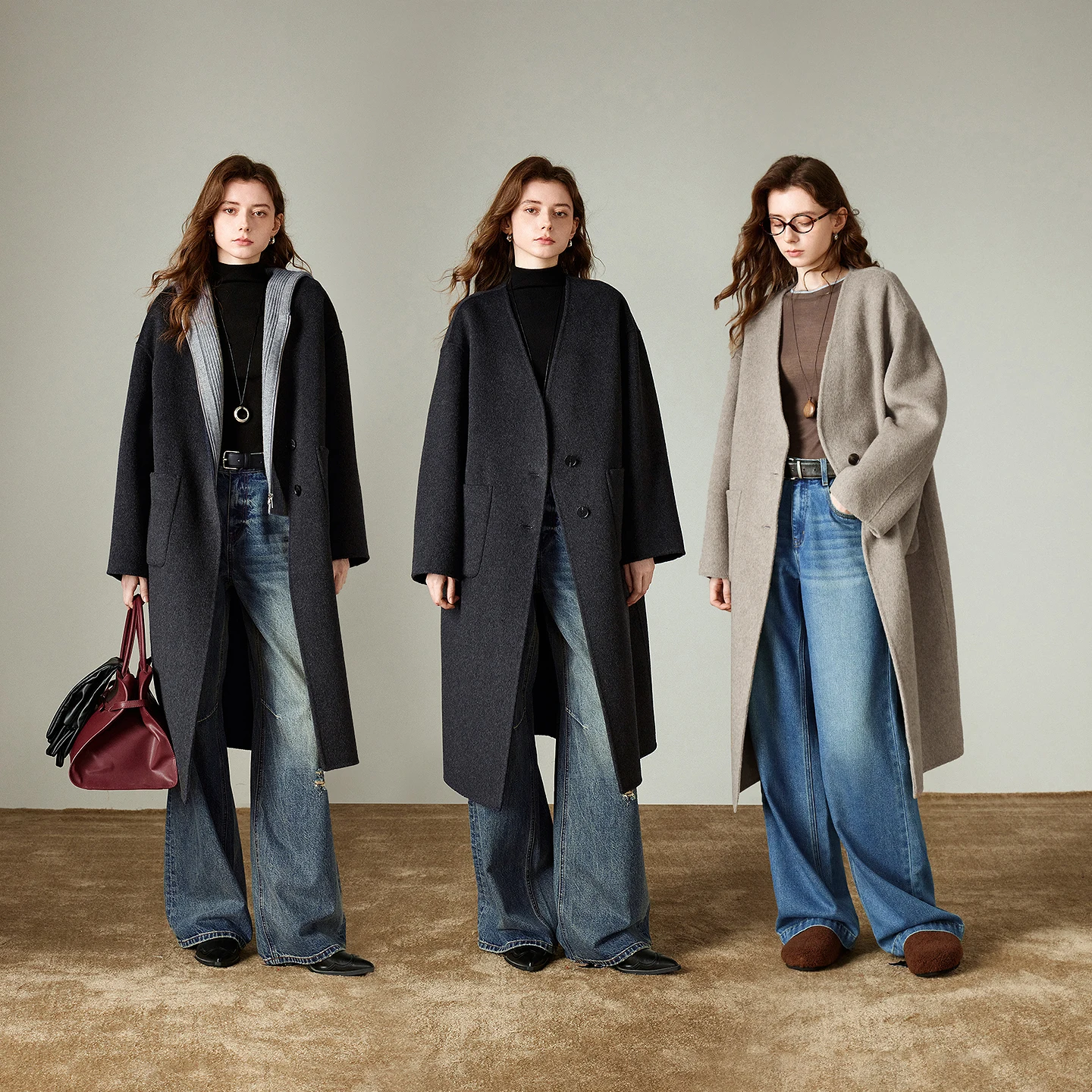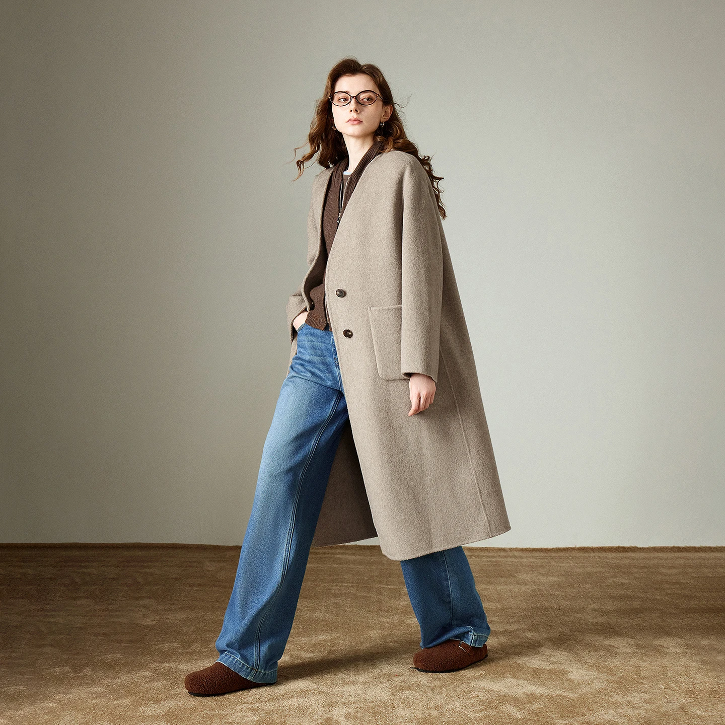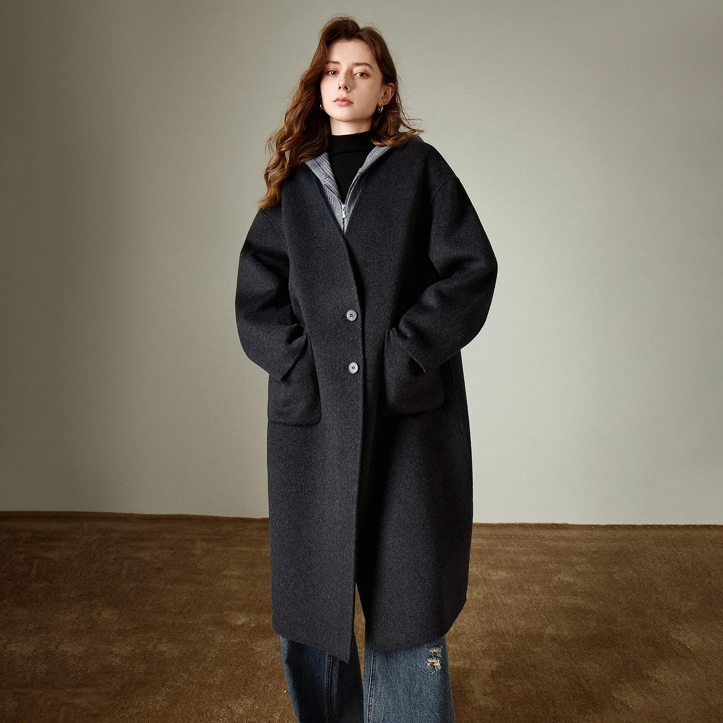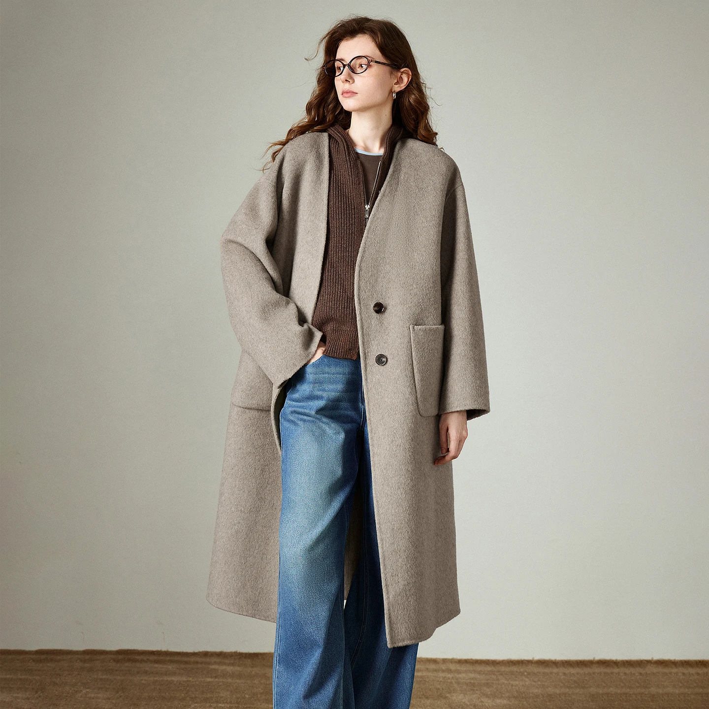 TOYOUTH Cappotto di lana da donna 2025 Inverno Nuovo scollo a V di media lunghezza Cappotto da donna retrò Cammello Nero Grigio