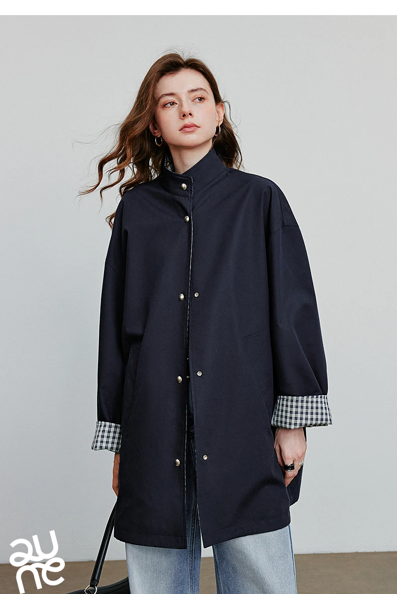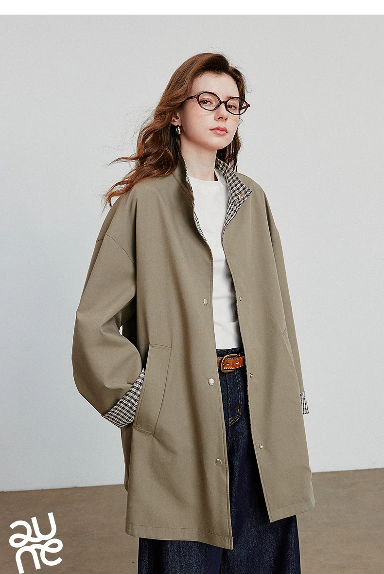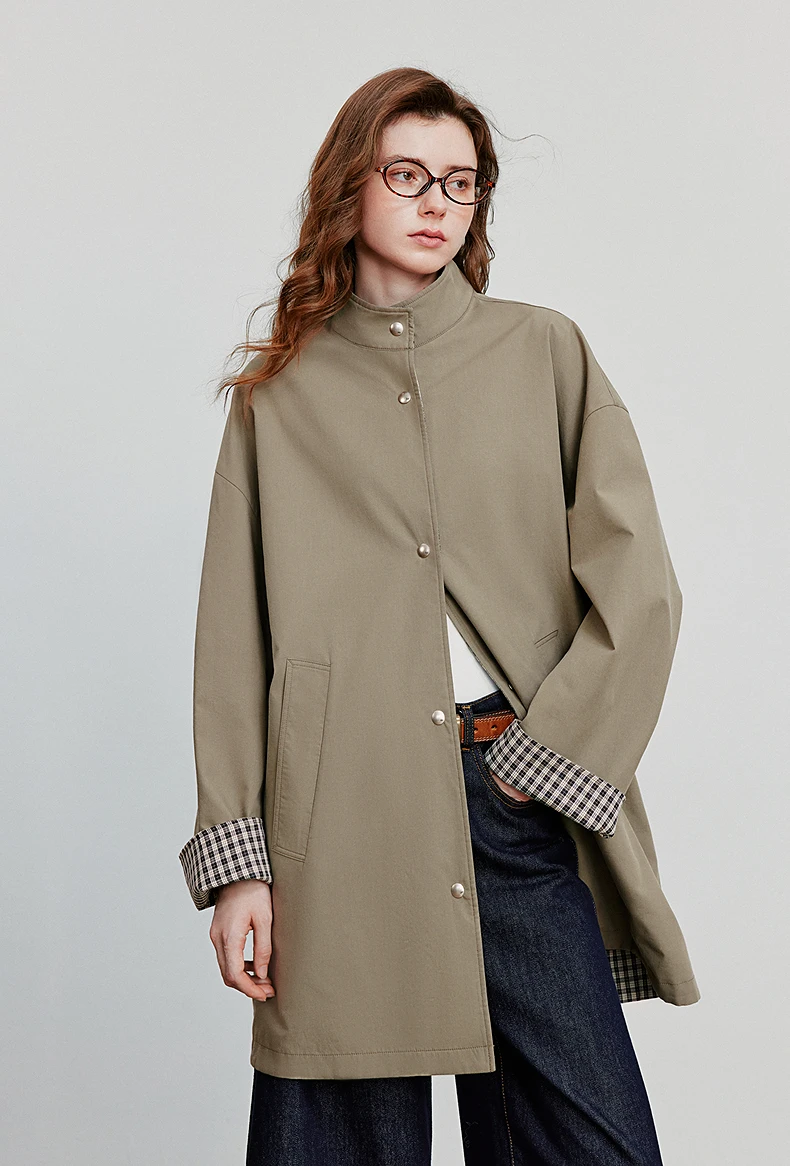 TOYOUTH Giacca a vento da donna 2025 Autunno Nuovo stile fienile Lyocell Cotone Trench medio lungo double-face alla moda