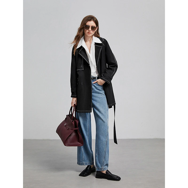 TOYOUTH Giacca a vento da donna 2025 Primavera Nuovo colletto con bavero in colore a contrasto Giacca da lavoro medio lunga con cintura