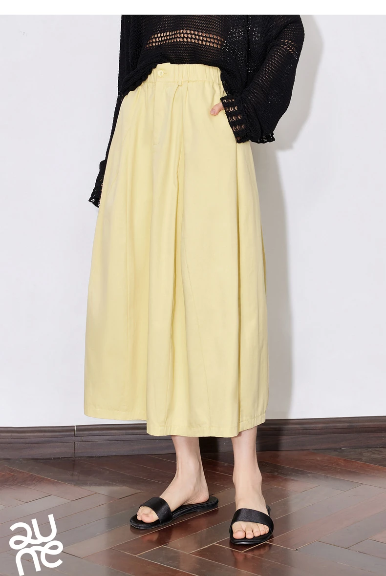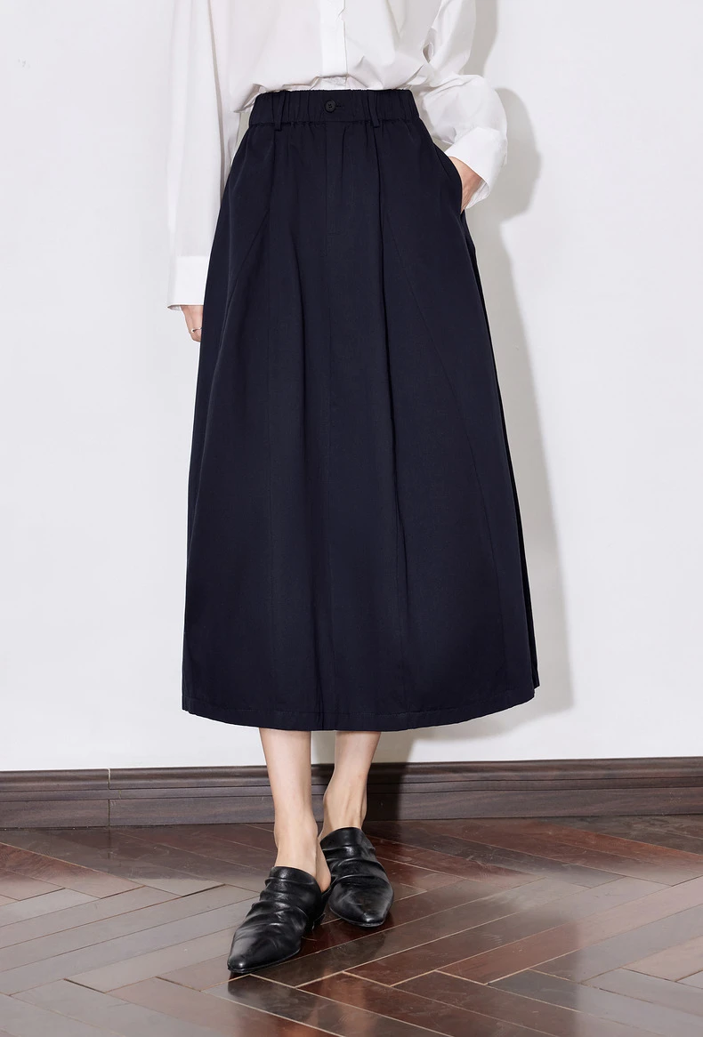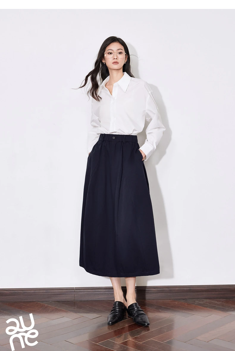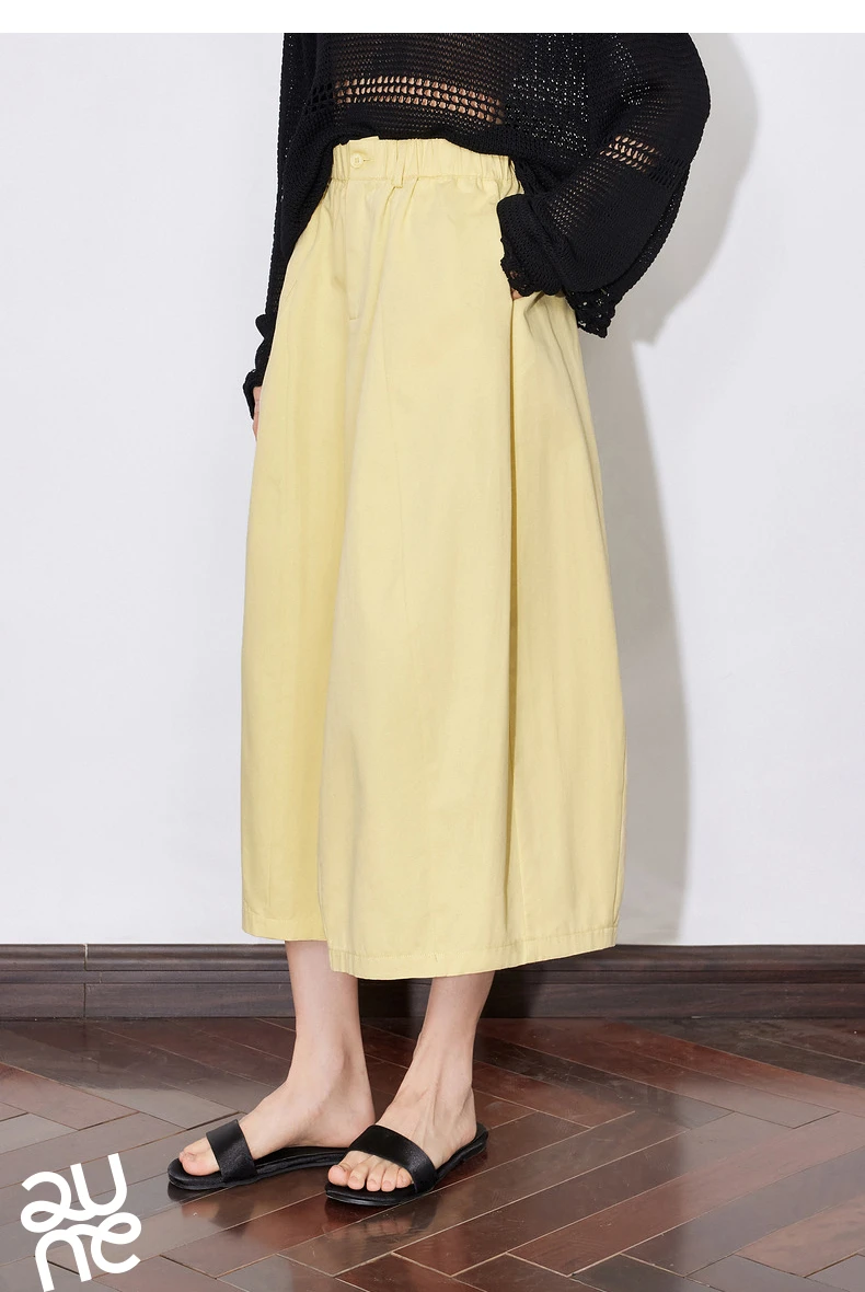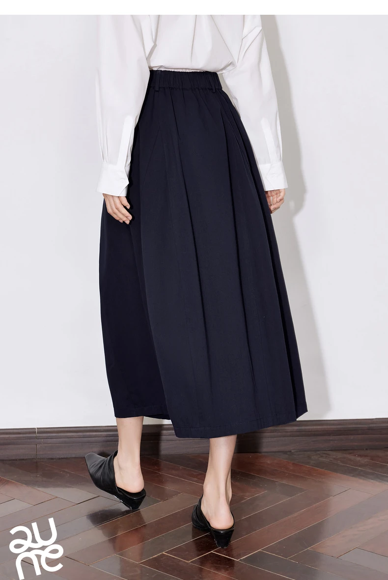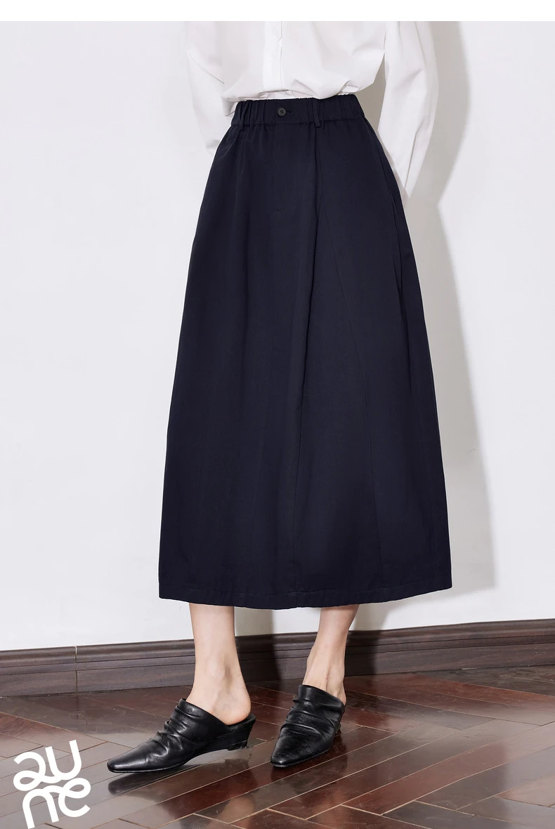 TOYOUTH Gonna da donna 2025 Primavera Nuovo colore solido Puro cotone Vita media Versatile Lunghezza caviglia Una linea Ombrello Gonna Nera