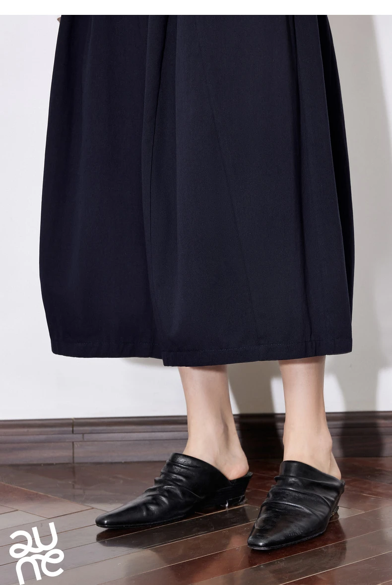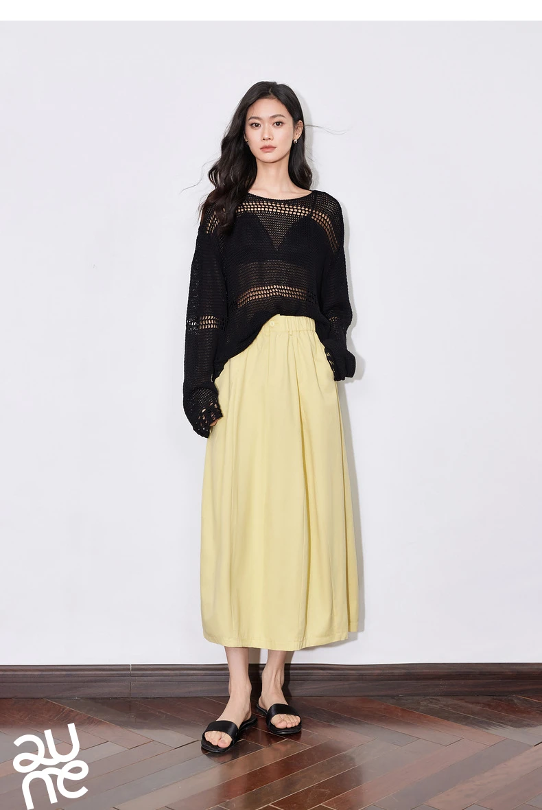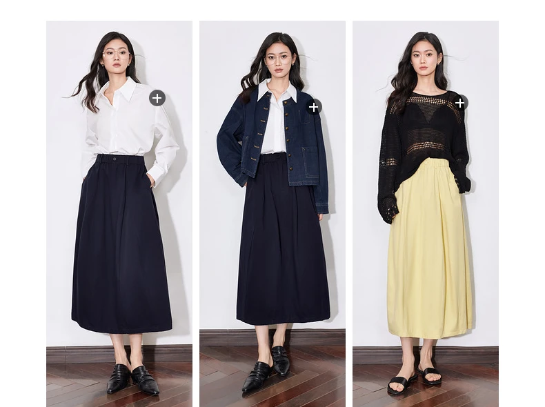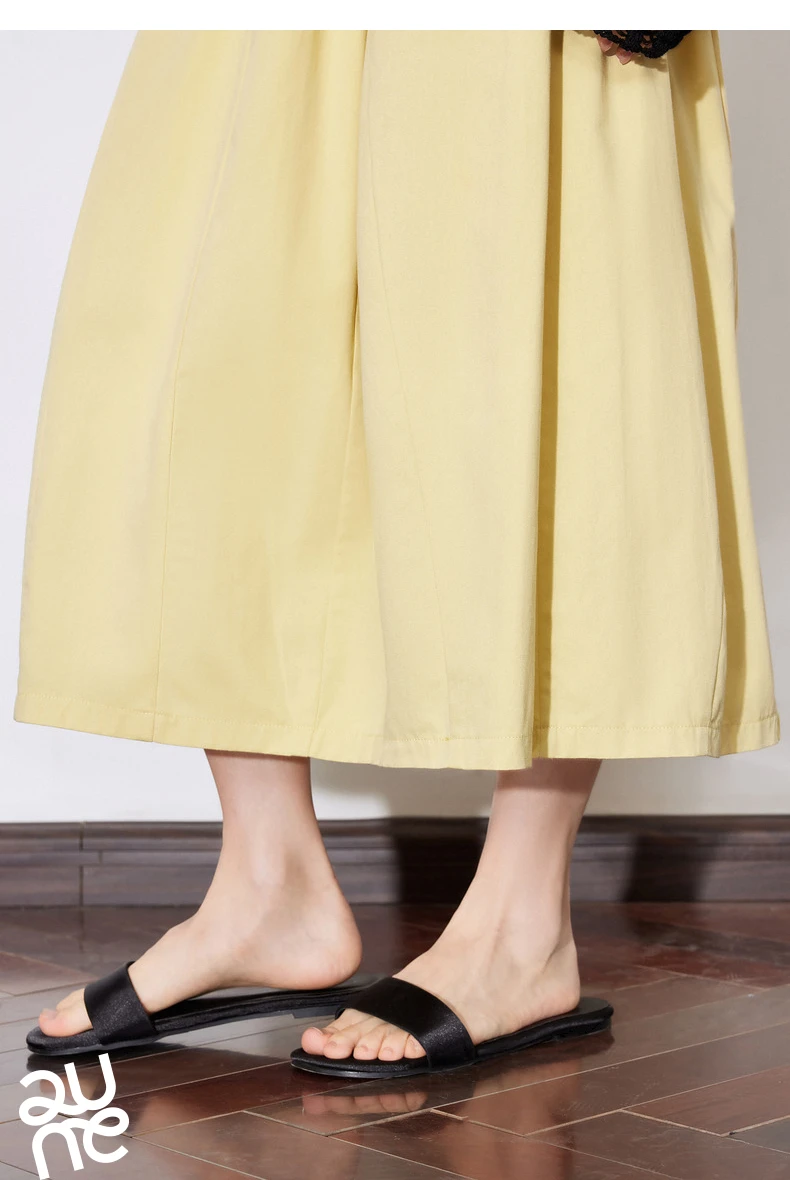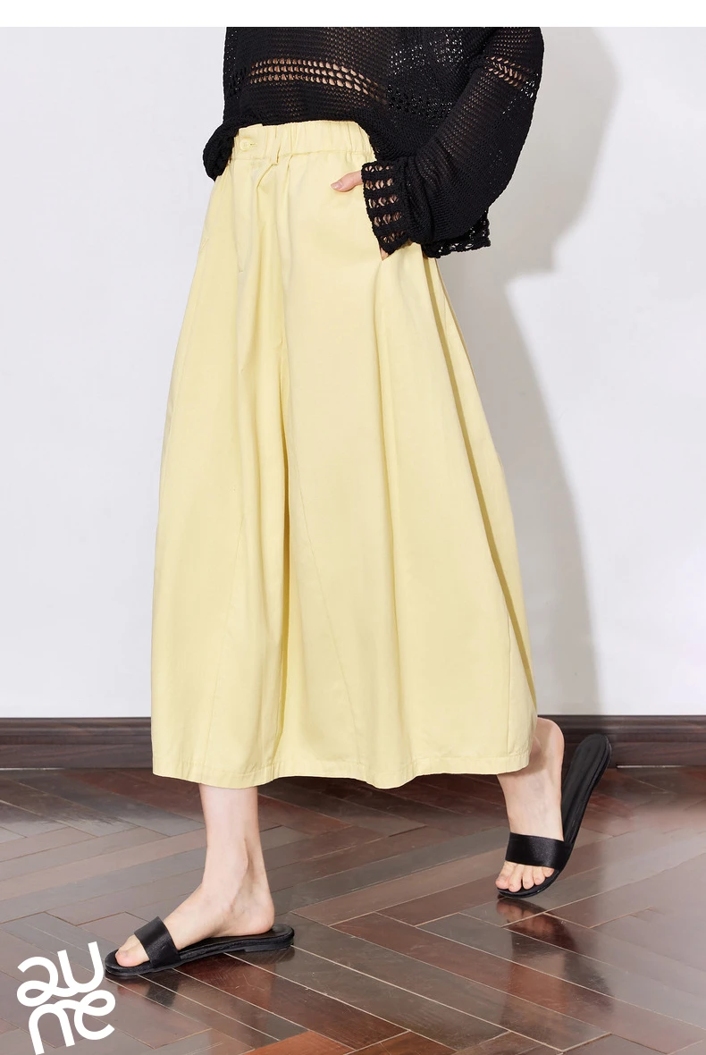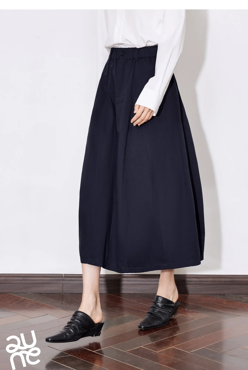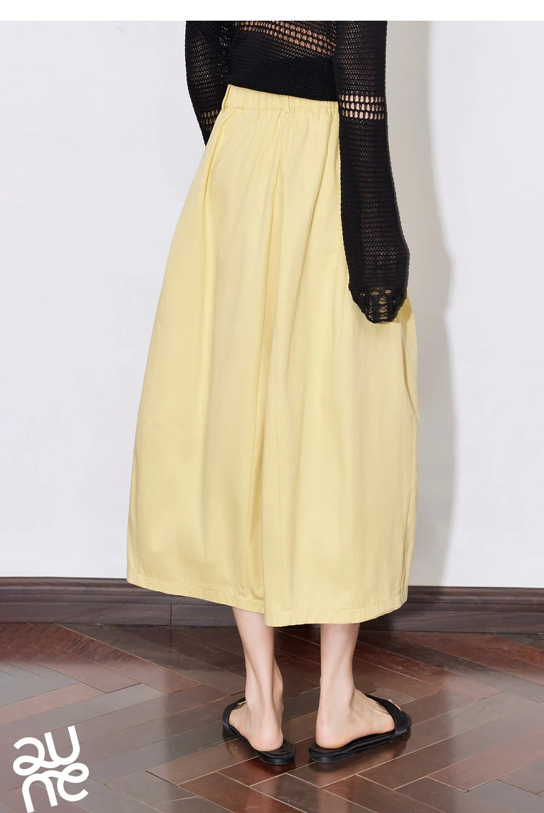 TOYOUTH Gonna da donna 2025 Primavera Nuovo colore solido Puro cotone Vita media Versatile Lunghezza caviglia Una linea Ombrello Gonna Nera