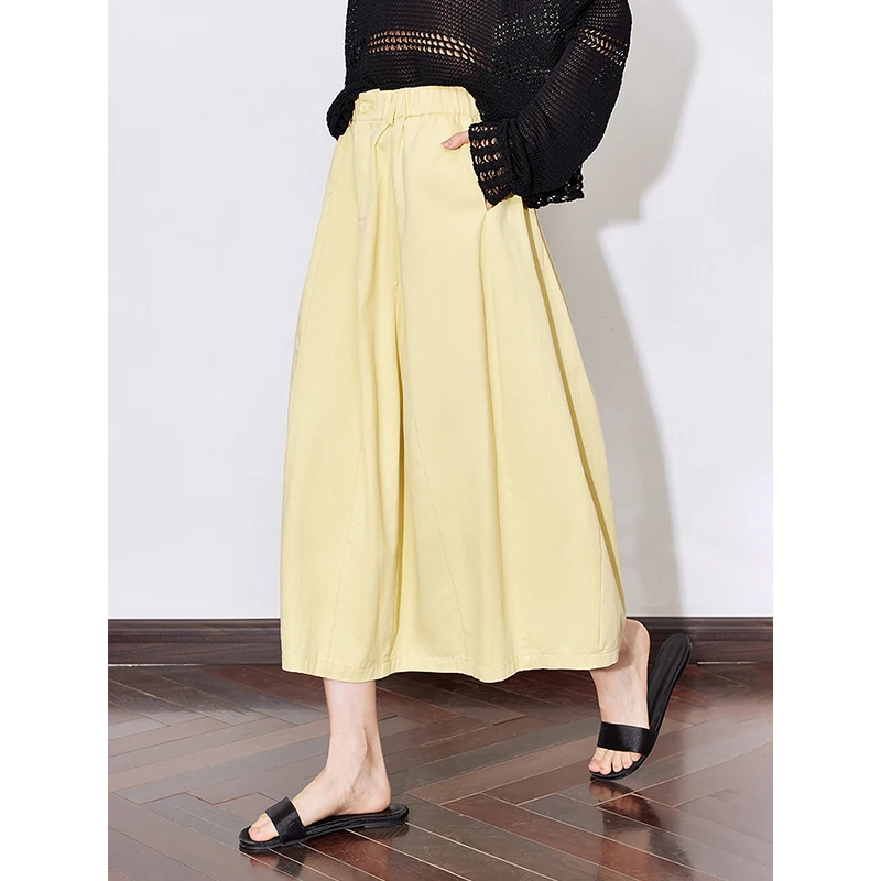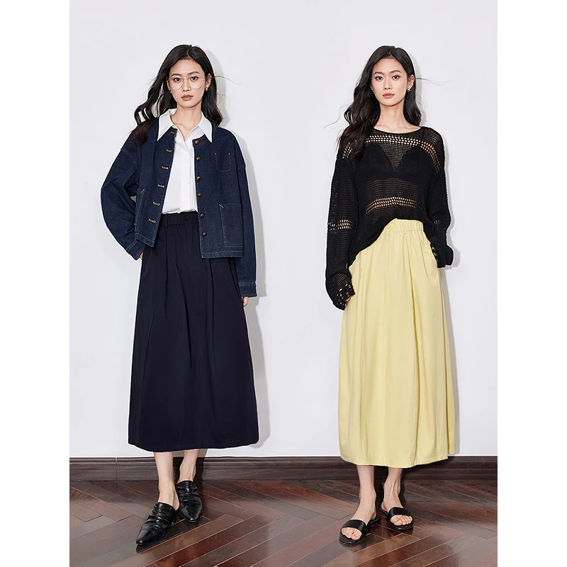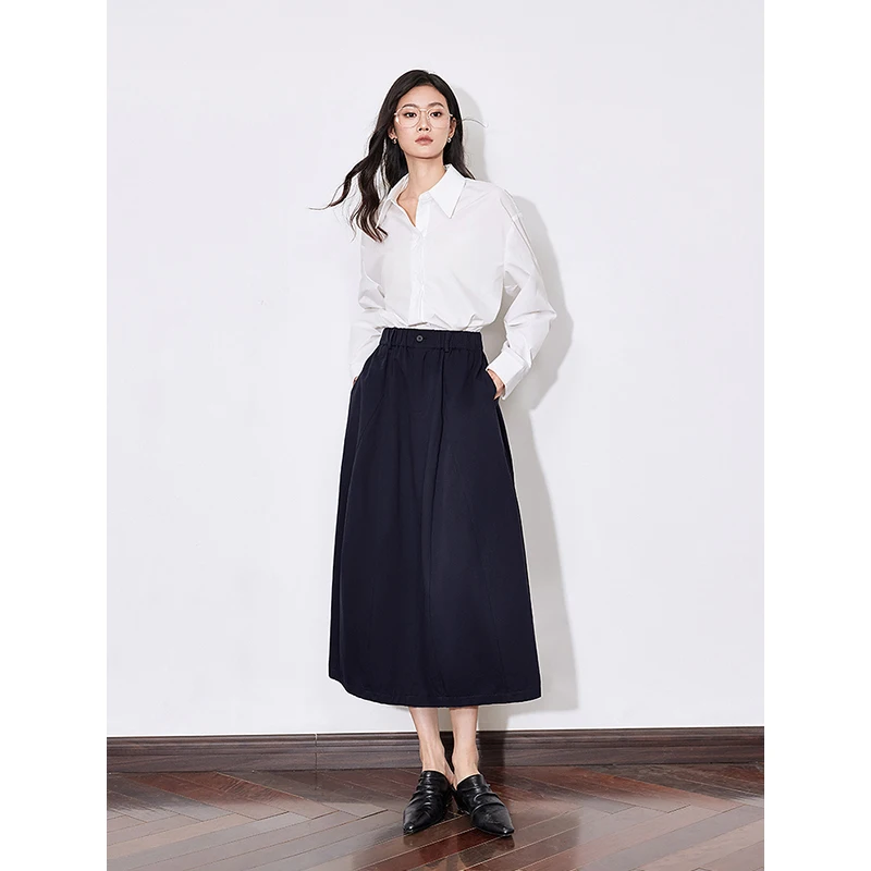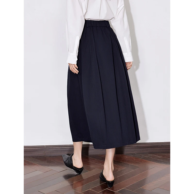 TOYOUTH Gonna da donna 2025 Primavera Nuovo colore solido Puro cotone Vita media Versatile Lunghezza caviglia Una linea Ombrello Gonna Nera