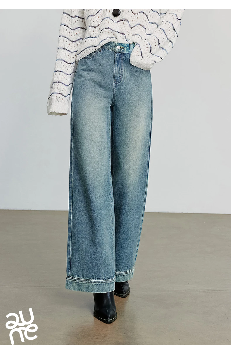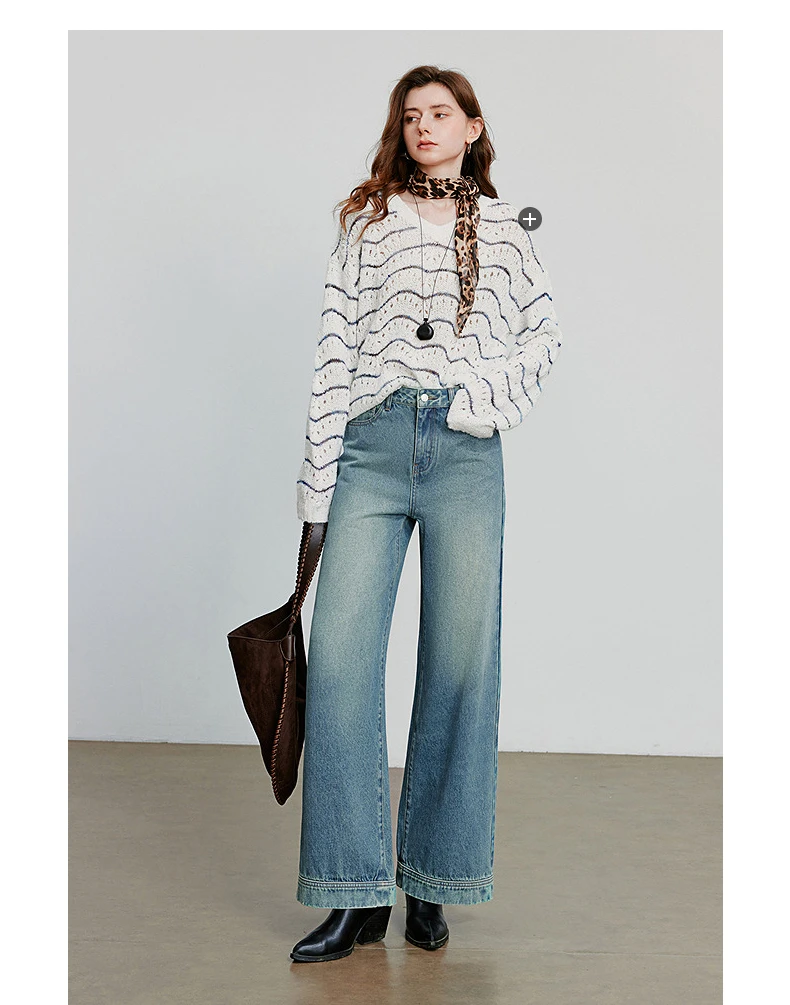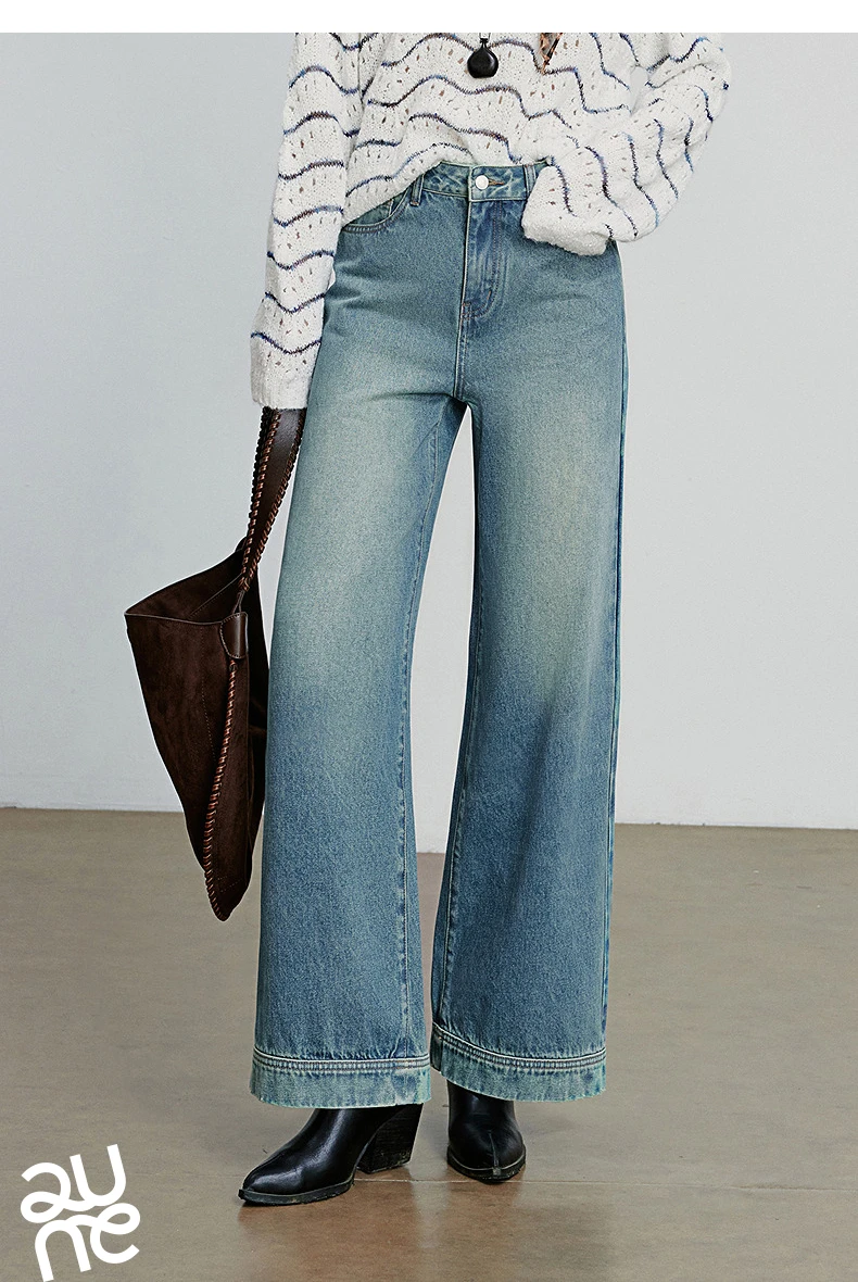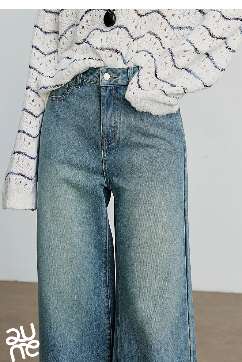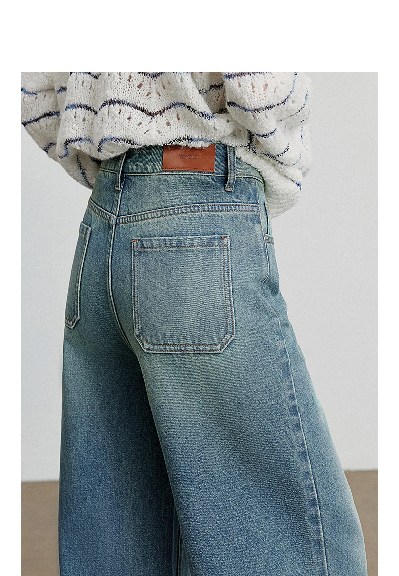 TOYOUTH Jeans denim da donna 2025 Autunno nuovi pantaloni lunghi a gamba larga a vita media streetwear retrò