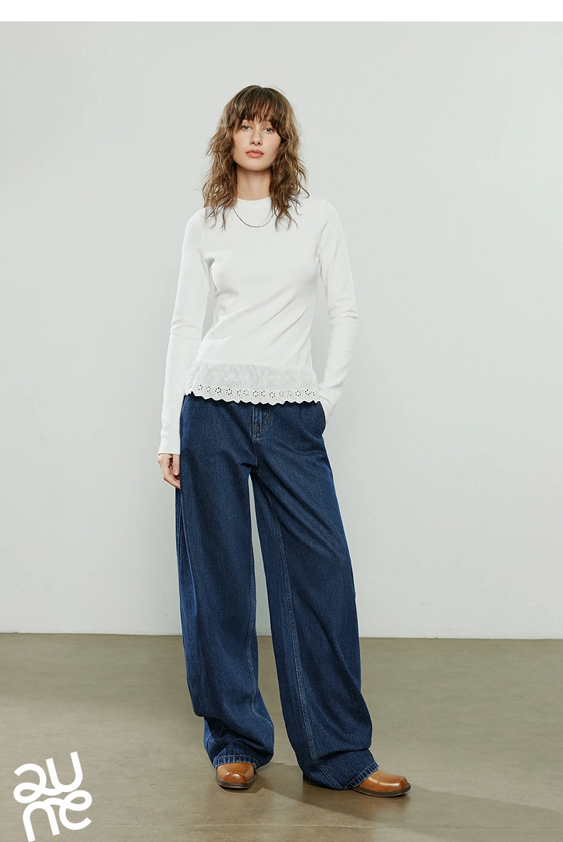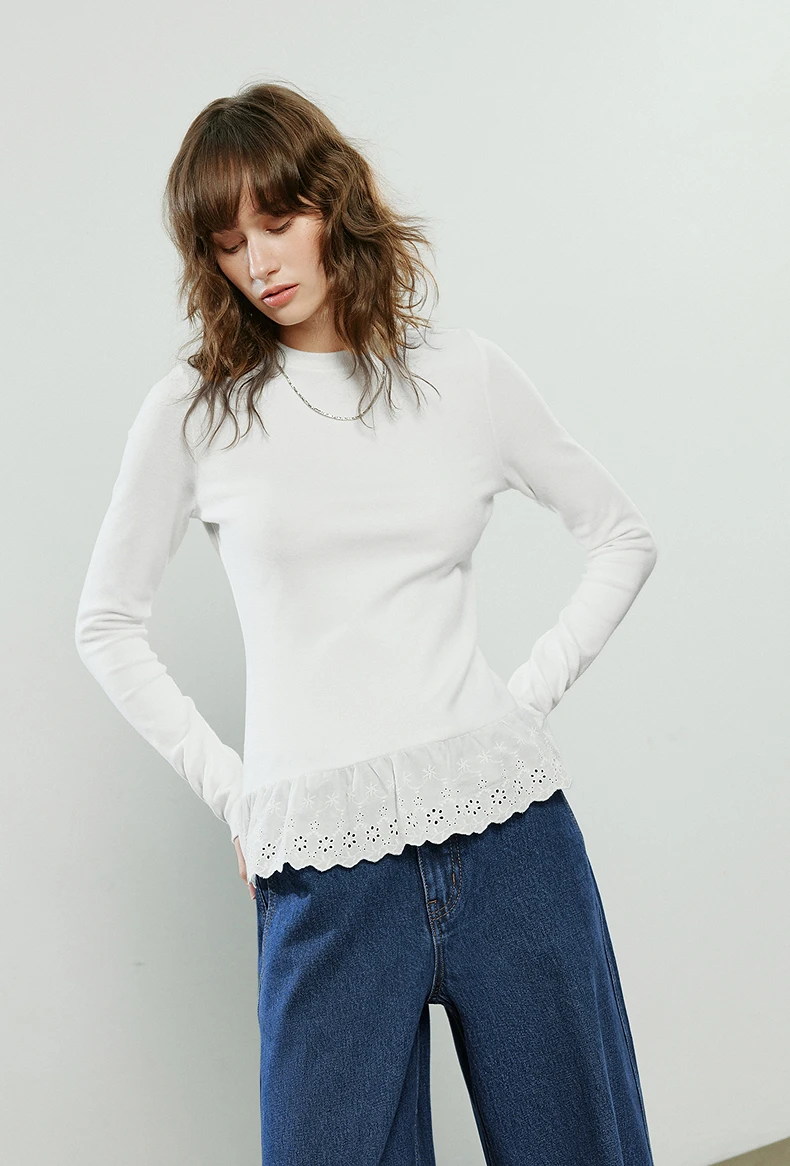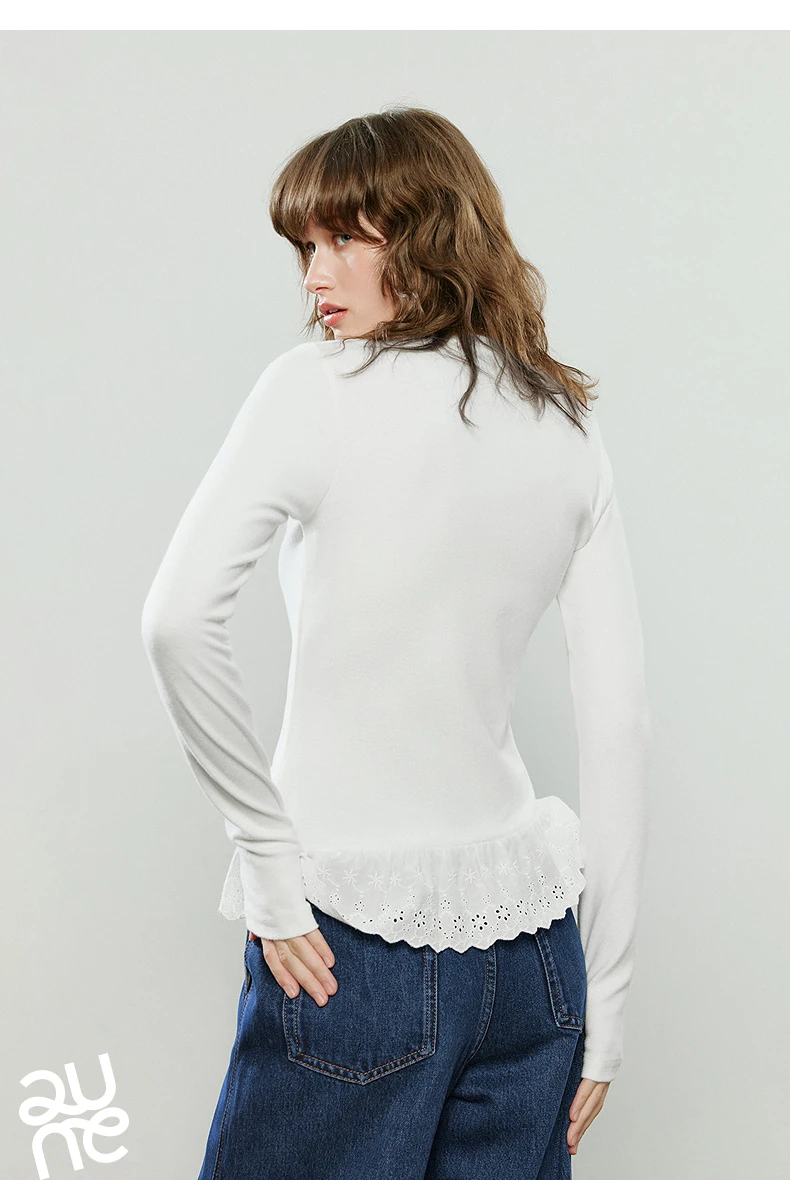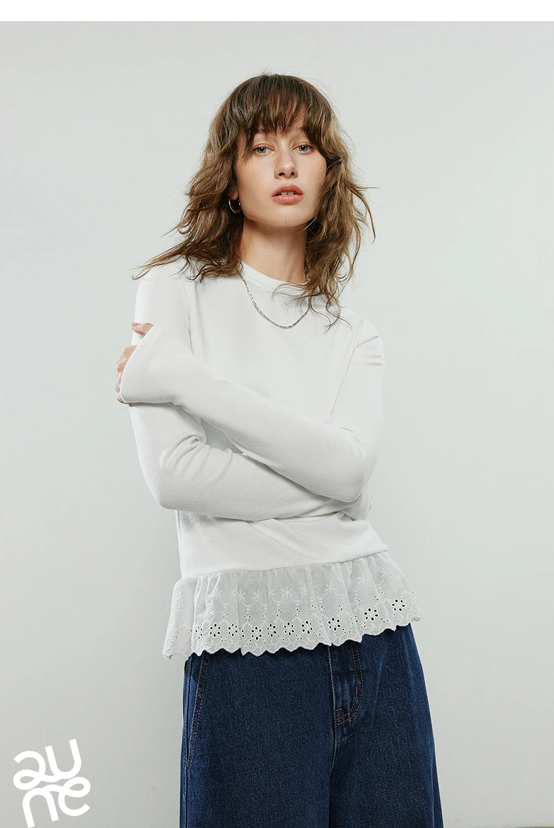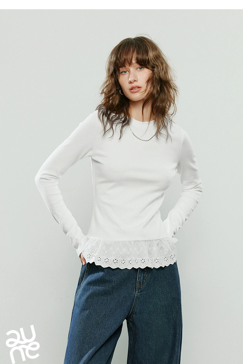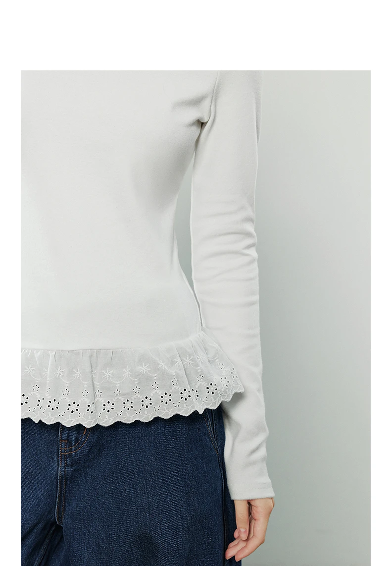TOYOUTH T-shirt da donna 2025 Inverno Nuovo girocollo simile al cashmere Top con base calda in pizzo impiombato sottile