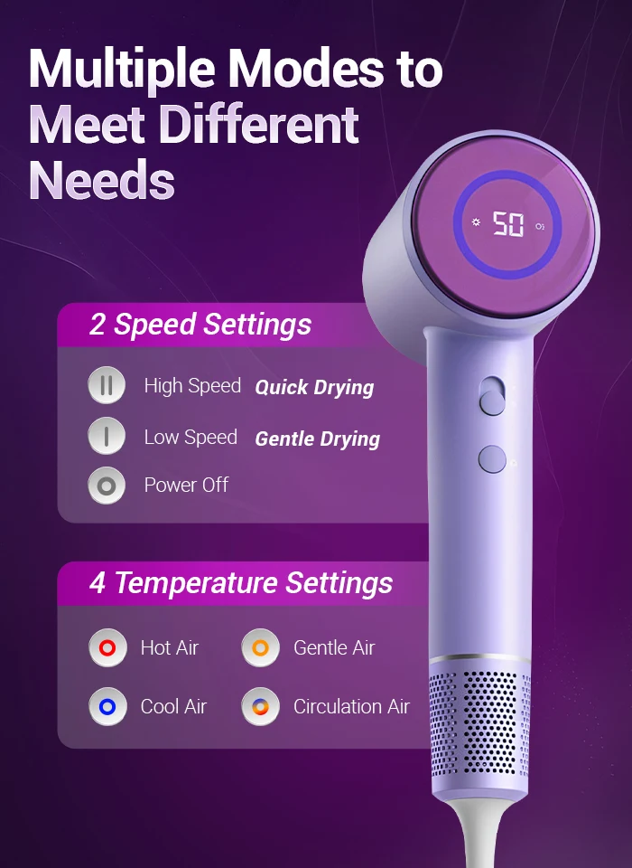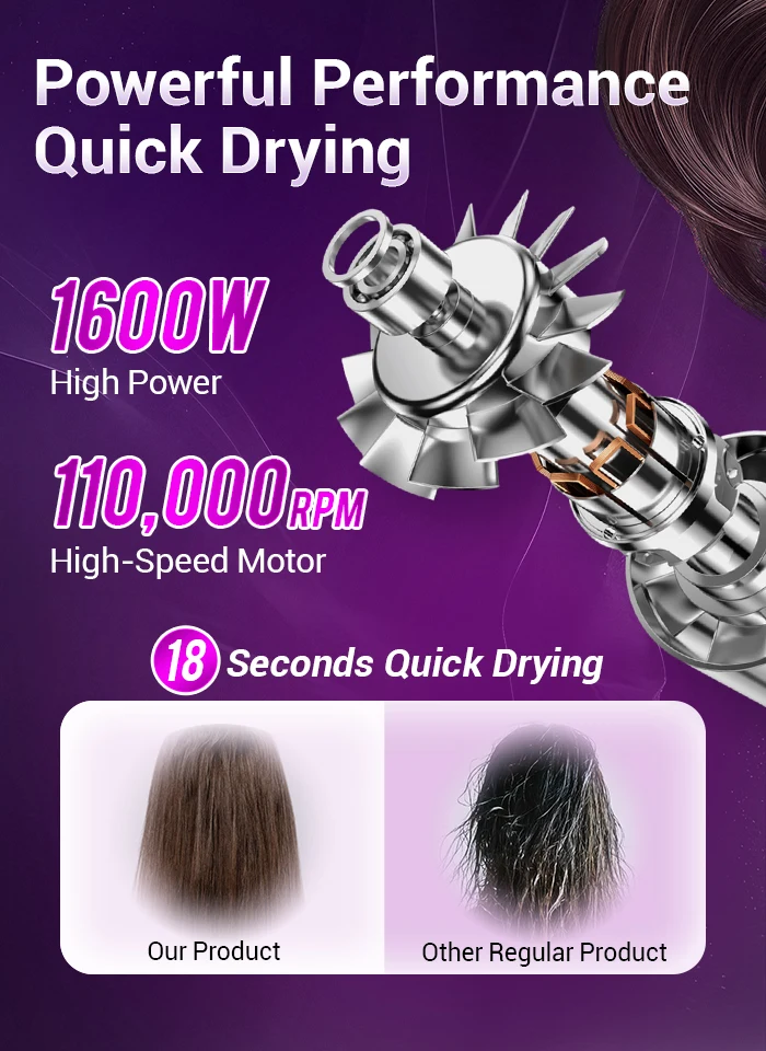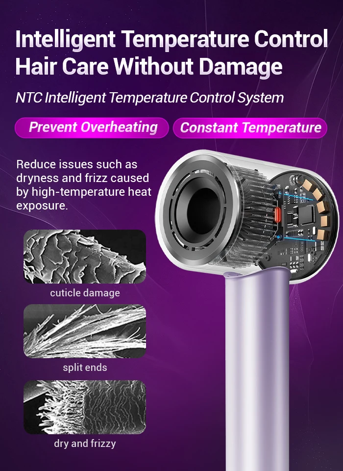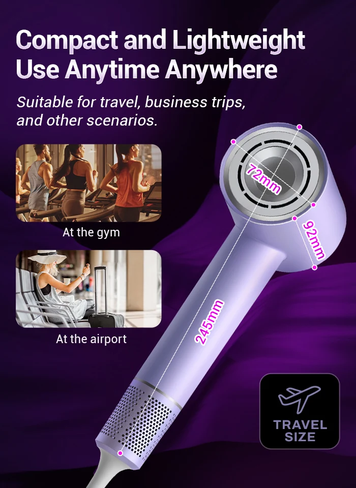 TQ-D3 Asciugacapelli professionale viola agli ioni negativi – 110K giri/min ad alta velocità, ultra silenzioso e controllo termostatico per la cura dei capelli