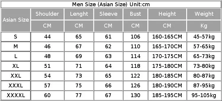 1.Questo giacche è di taglia asiatica, scegli 1-2 taglie più grandi rispetto al tuo normale.