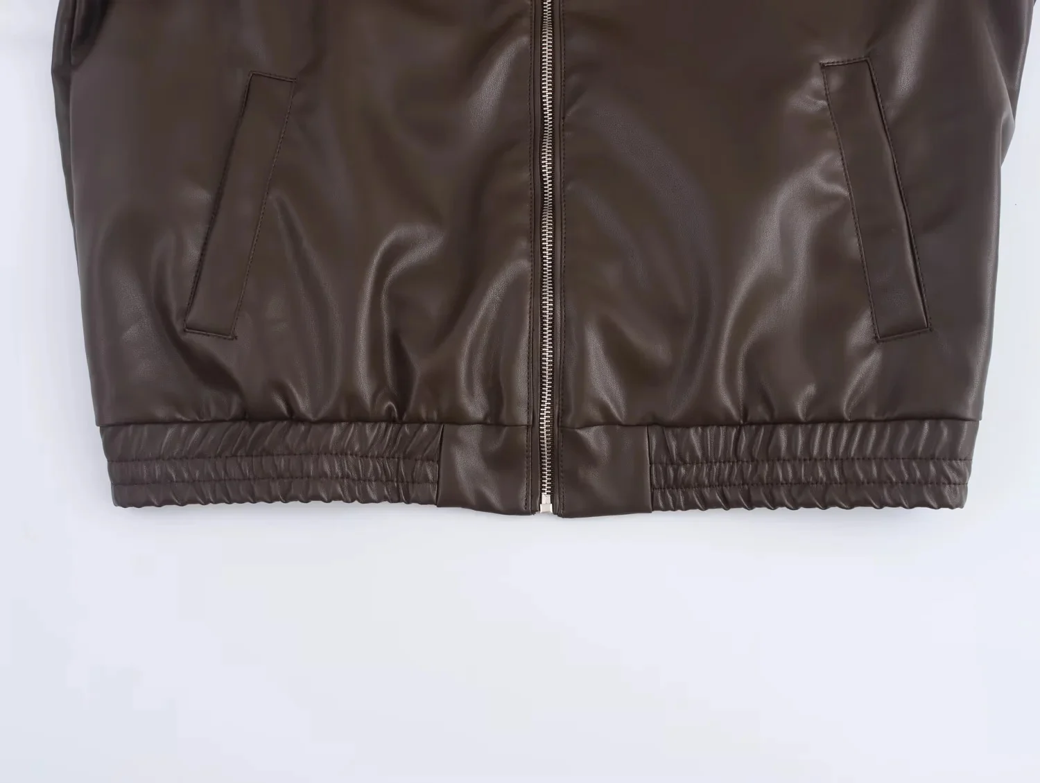 TRAFZA 2025 Autunno Inverno Business Casual Ecopelle Giacche da donna Chic Vintage Impiombato Cerniera Ritorno a scuola Giacche da donna