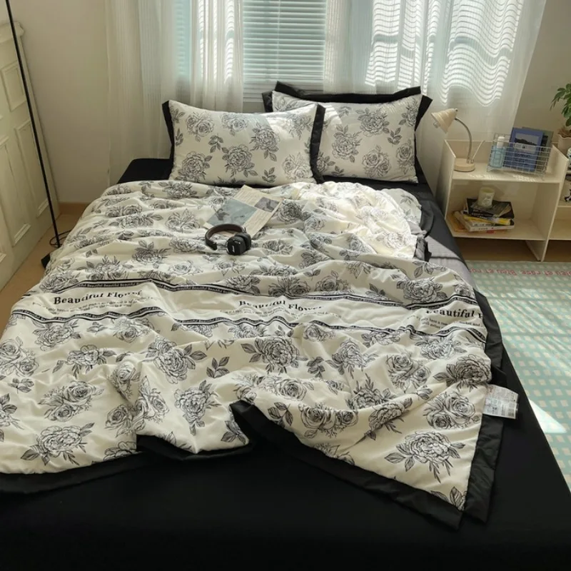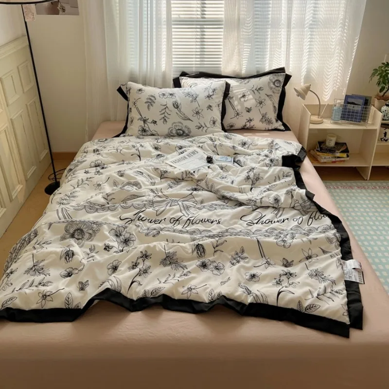 Trapunta estiva in cotone lavato con pizzo Hepburn trapunta estiva in quattro pezzi doppia singola trapunta estiva fresca trapunta per condizionatore d’aria