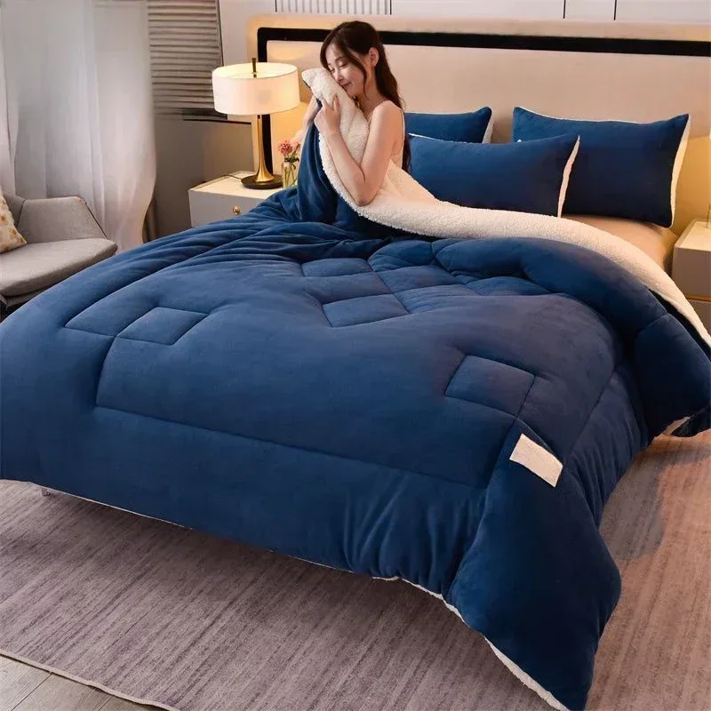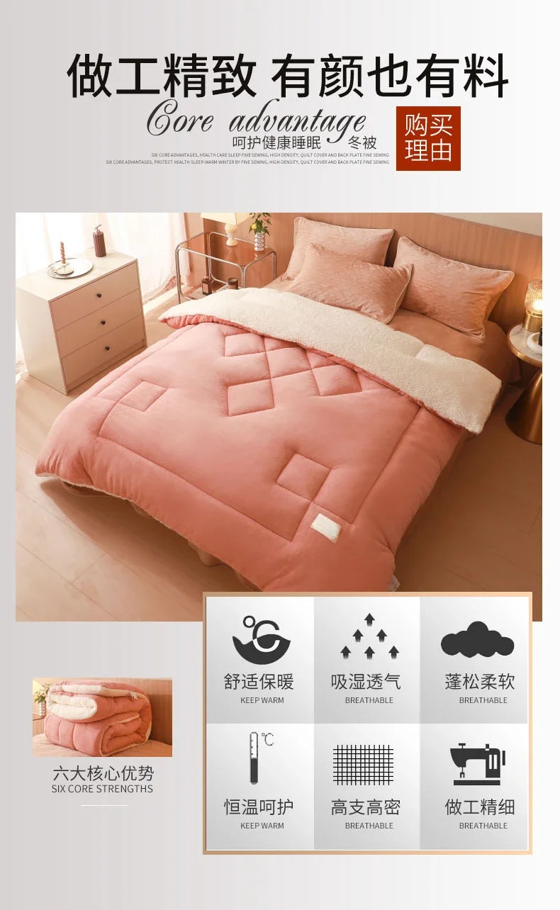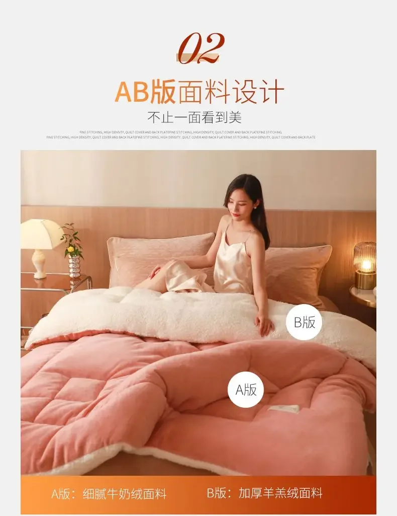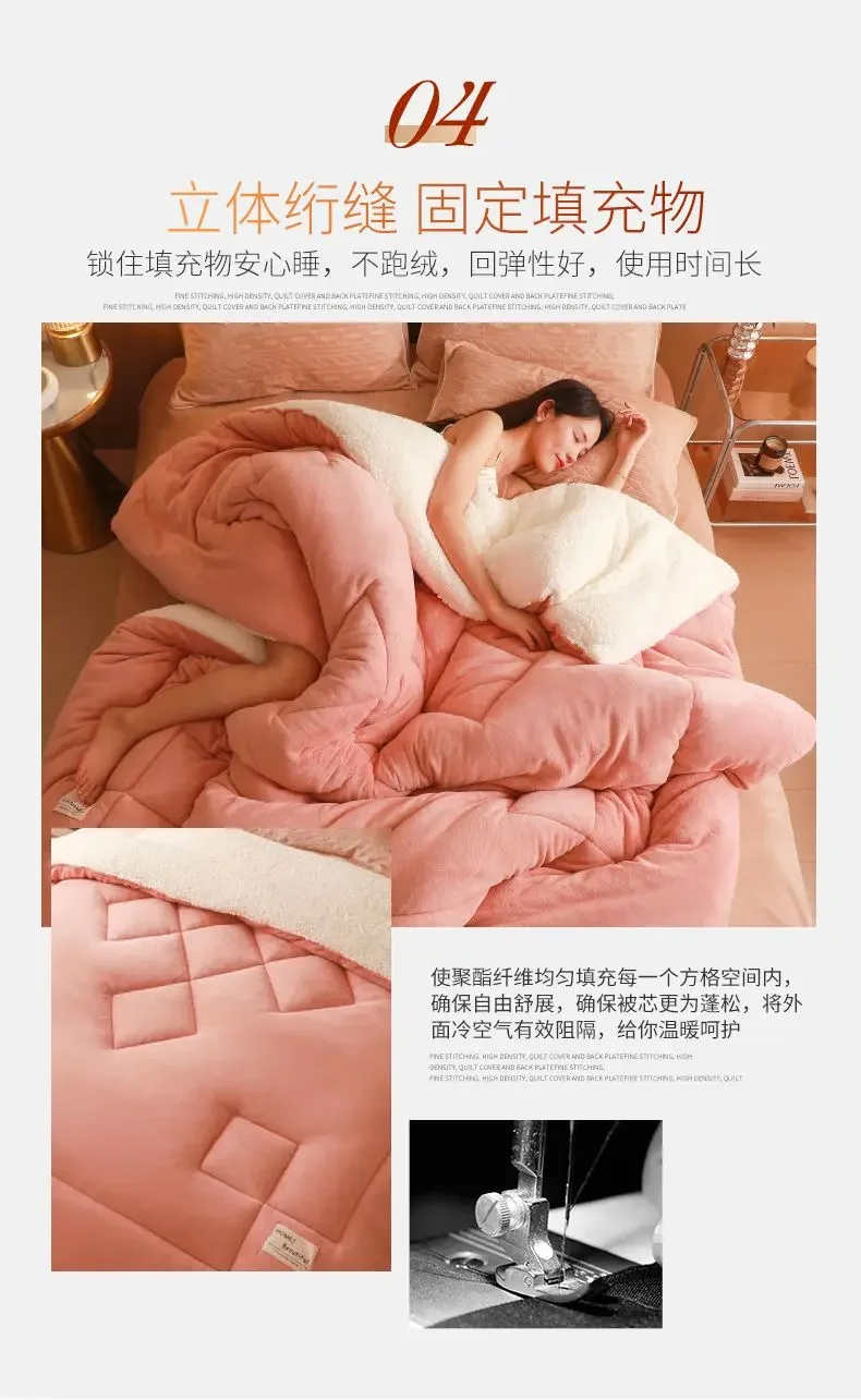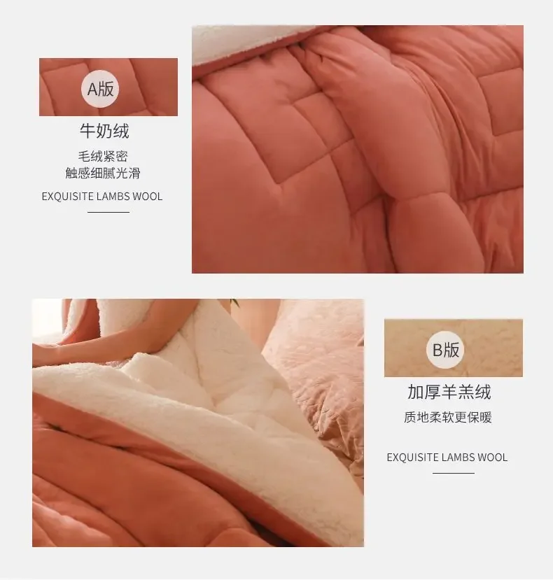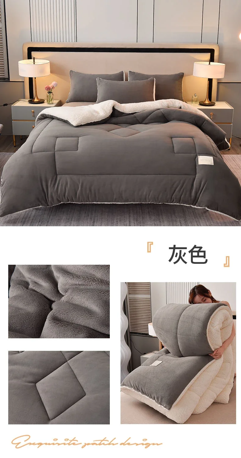 Trapunta invernale in velluto di latte a doppia faccia, in lana di agnello spessa, per tenere al caldo per dormitori per studenti, trapunta doppia in tinta unita per adulti