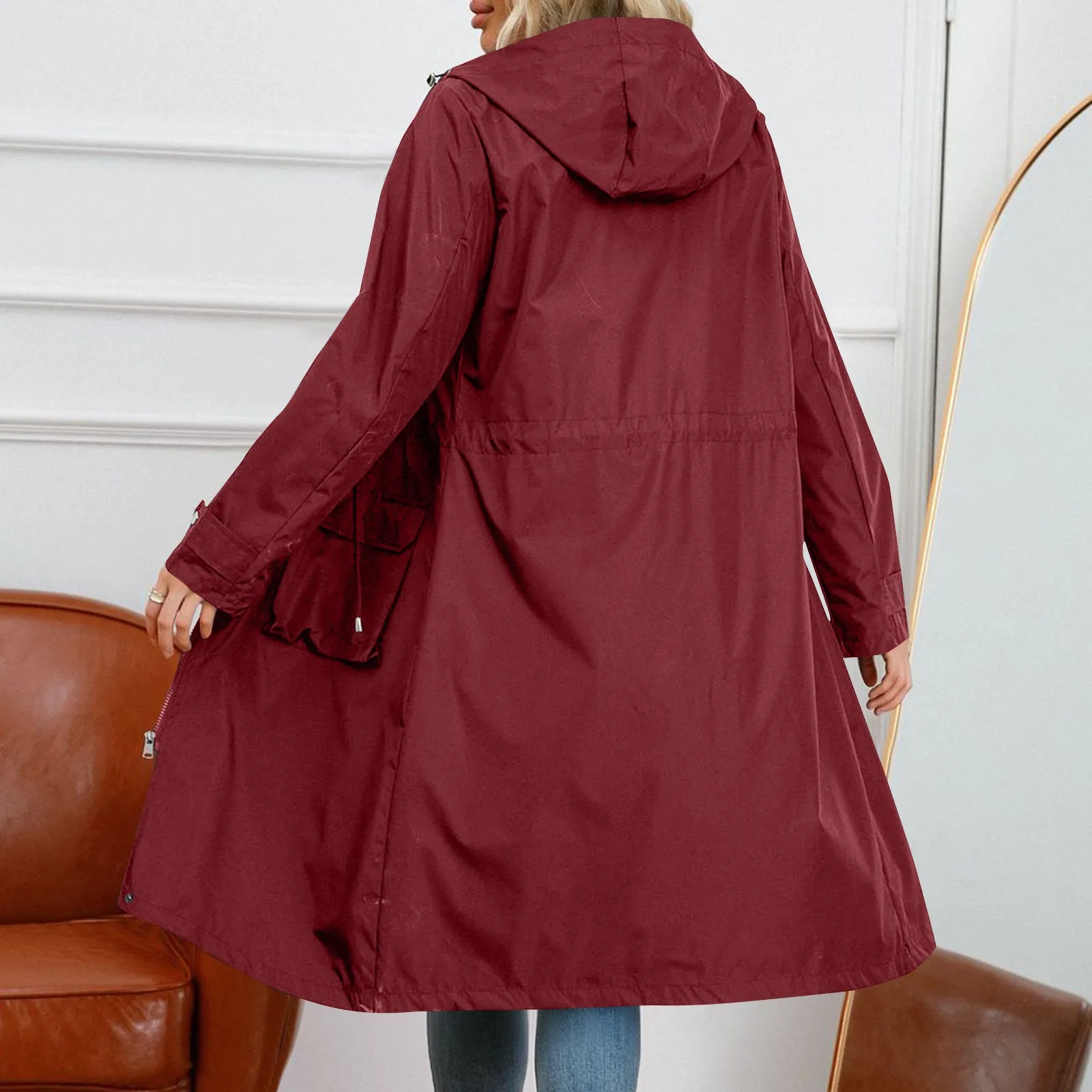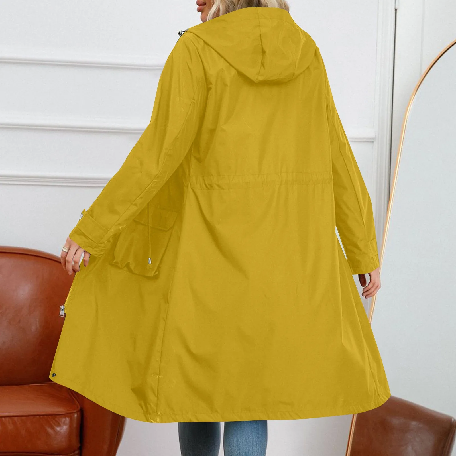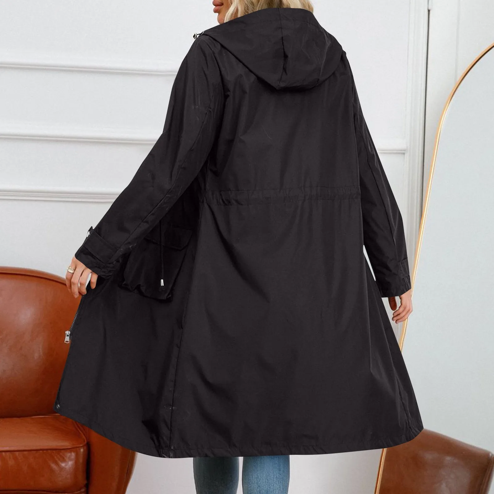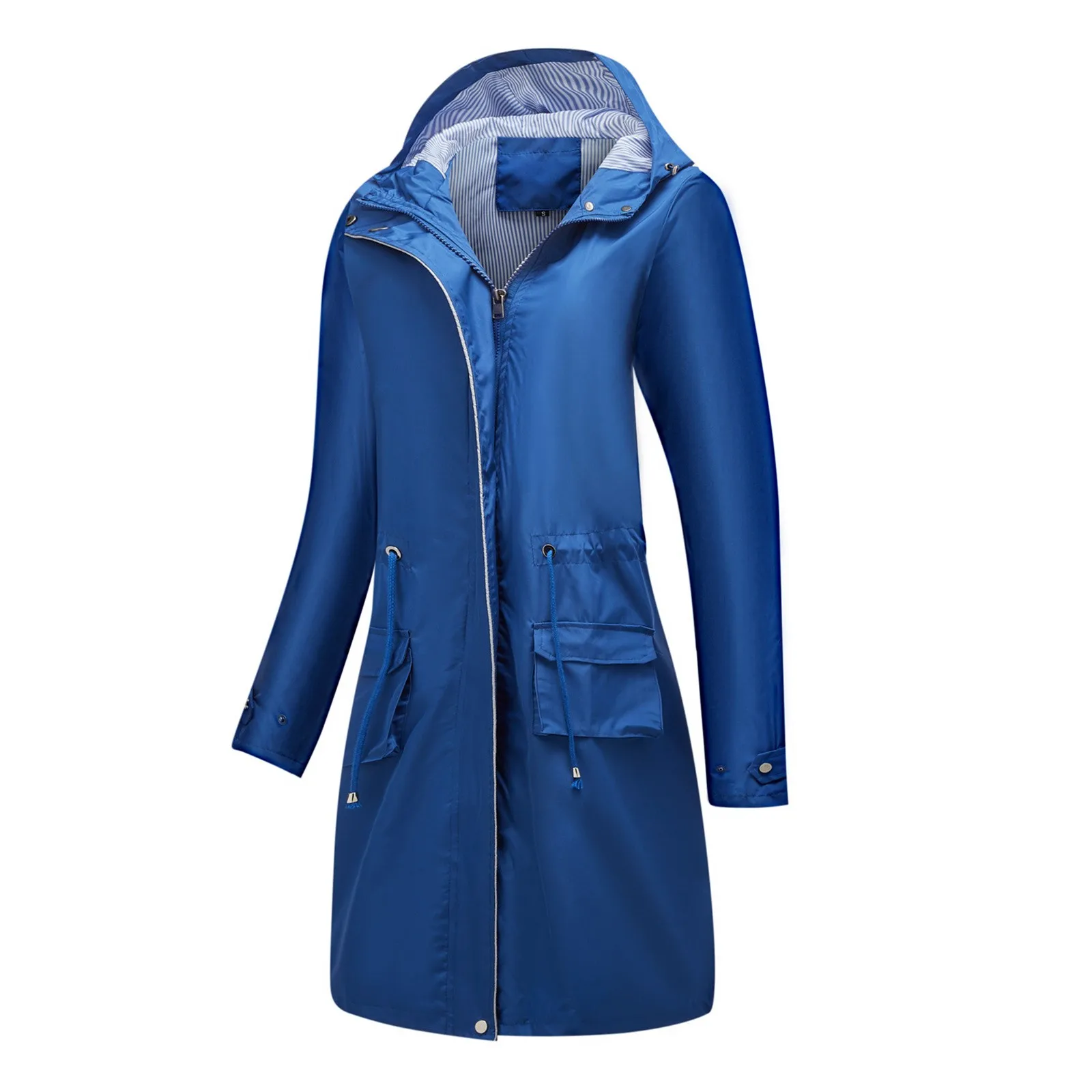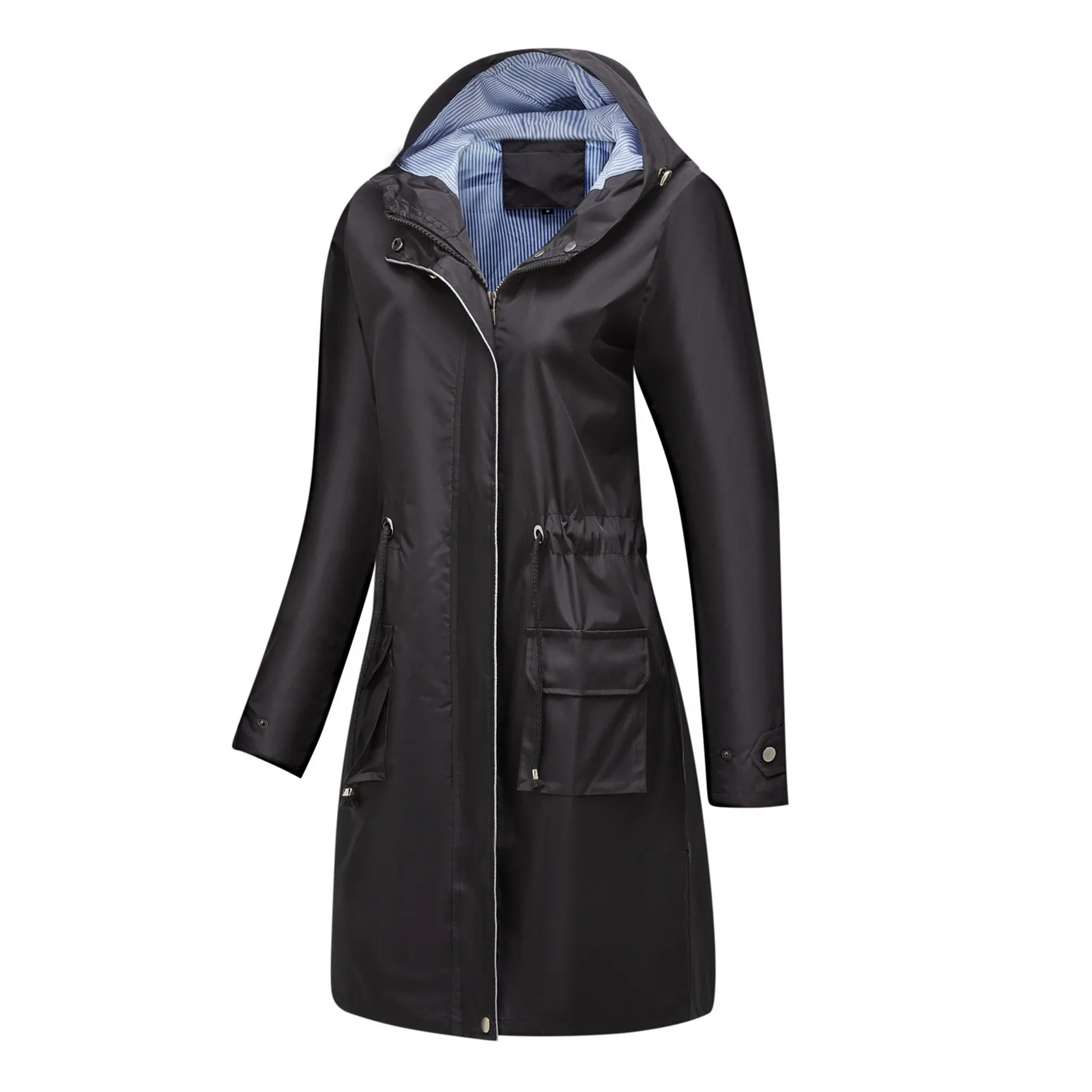 Trench da donna a maniche lunghe con cappuccio in tinta unita con giacca a tubino a righe e dritto