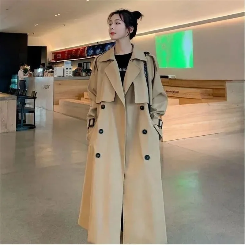 Trench lungo autunno inverno cachi per donna Giacca 2025 Capispalla elegante Colletto rovesciato Cintura con cravatta Giacca a vento chic coreana