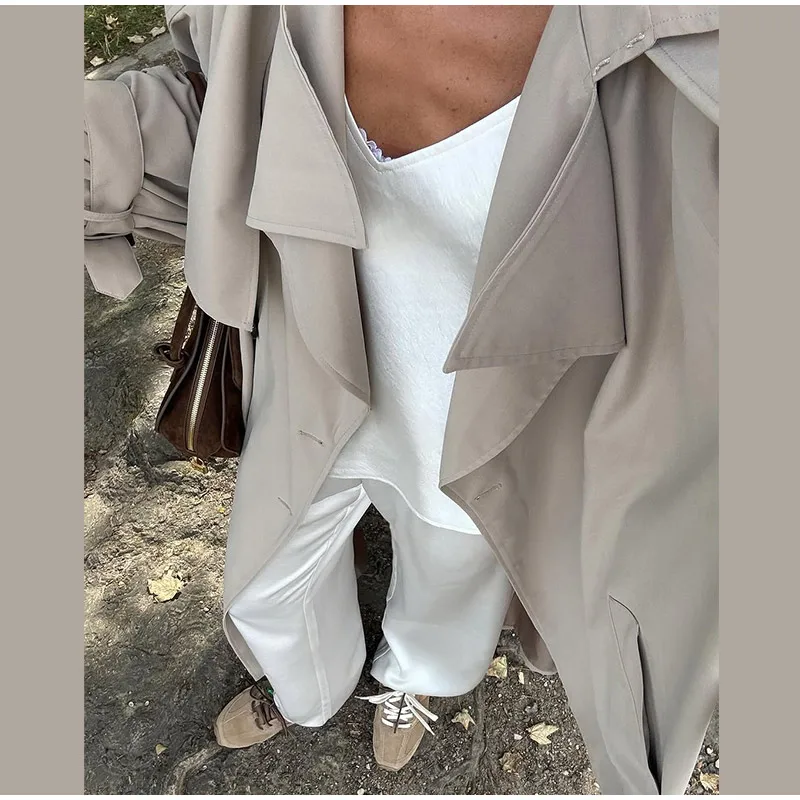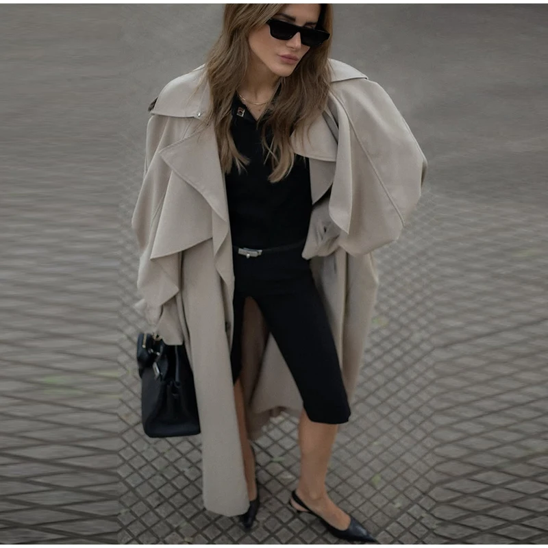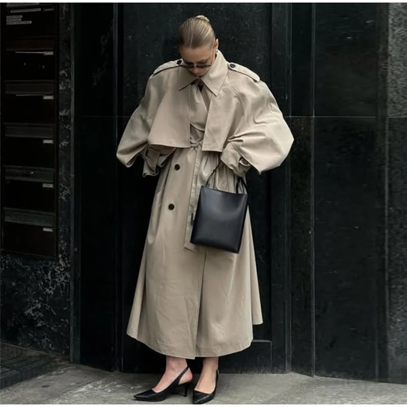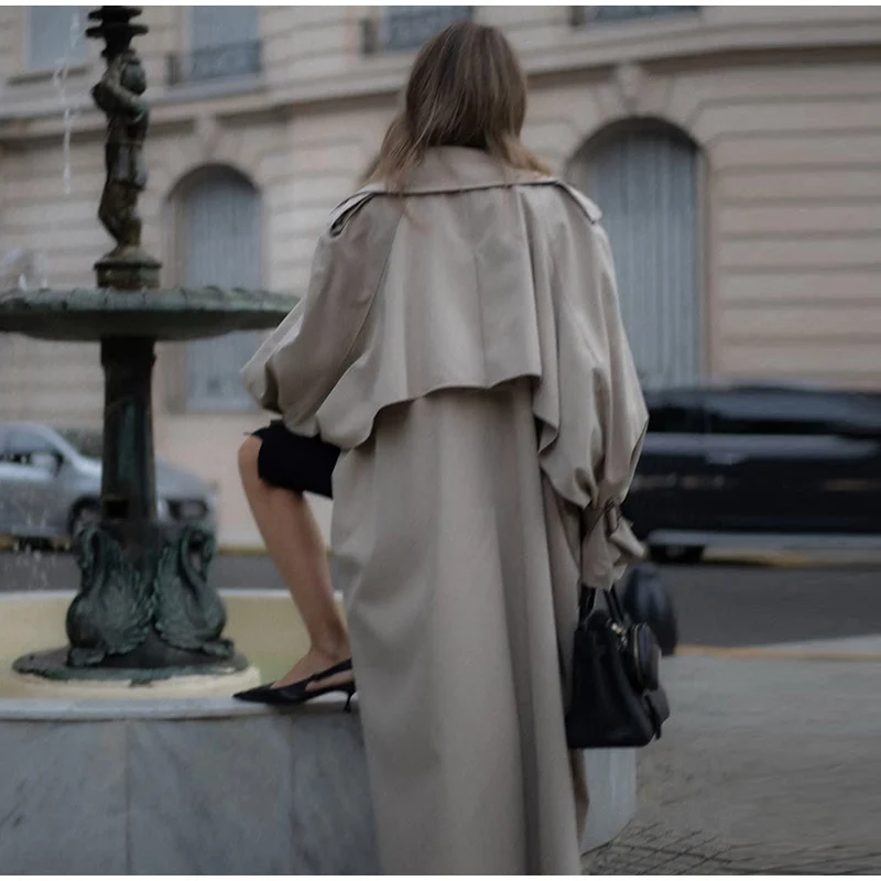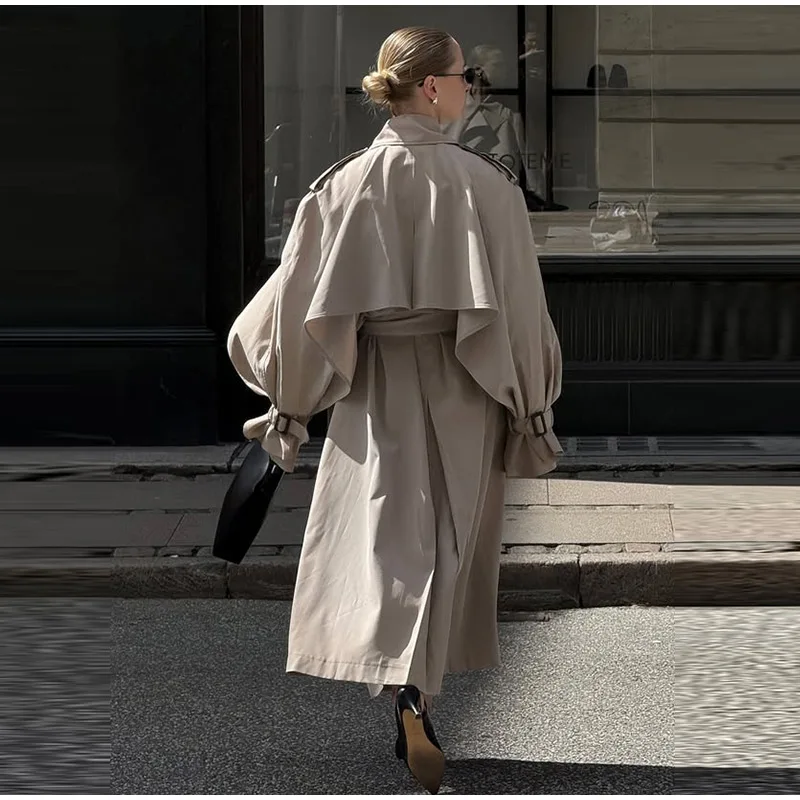 Trench lungo da donna elegante con cintura risvolto ampio doppio petto cappotti a maniche lunghe 2025 Autunno Lady Chic Commute Outwear