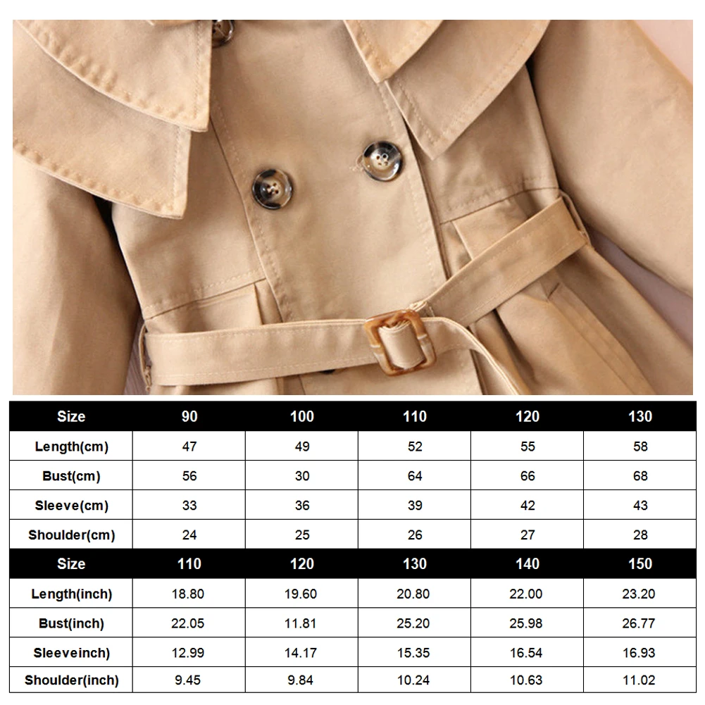 Trench autunnale da bambina per bambina, trench doppiopetto con volant e cintura, giacca a vento casual a maniche lunghe invernaleDettagli del prodotto:Nome dell’articolo: Trench per ragazzeMateriale: cotoneModello: doppio pettoColore: rosa, kakiDimensioni: 90 cm, 100 cmConfezione: 1 * Cappotto per bambiniCaratteristiche:🌸1. Materiale: misto cotone.Nessun danno alla pelle del tuo bambino.Tessuto giacca a vento di alta qualità.Morbido e leggero.Buona fattura in ogni dettaglio per un look chic.Funzioni sia calde che antivento.🌸2.Caratteristica: il trench di questa bambina ha una chiusura con bottoni.Cintura con fiocco regolabile.Si prega di notare che la giacca non ha passanti per tenere la cintura.La cravatta intorno alla vita è rimovibile.Puoi anche aprirlo come un cappotto.🌸3. Manica lunga con volant.Polsini elastici, dai alla tua principessa molto spazio per crescere.Giocoso e adorabile.Rendi la tua bambina adorabile e affascinante, mai fuori moda.Un must per il guardaroba autunno/inverno principessa🌸4.Design: solo uno strato, materiale leggero, non è pesante come gli altri trench.Quindi, pur mantenendo caldo e antivento, il tuo bambino non potrebbe sentirsi sobrio.🌸5. Carino ed elegante, è perfetto da indossare sopra un vestito o anche solo una camicia e alcuni leggings.Anche per Halloween, regalo di Natale.Avviso:1, l’età e l’altezza suggerite sono solo per riferimento.Se la tua misura oscilla tra due taglie, consiglia di scegliere la taglia più grande.(Le misure mostrate nella tabella delle taglie si riferiscono alle misure dell’articolo, non al corpo).2. Il colore dell’articolo potrebbe variare leggermente, poiché il colore nei diversi tipi di monitor di computer potrebbe essere leggermente diverso.